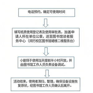 2、师生使用星光小剧场请提前三天以上向图书馆读者服务中心预约,并填写使用登记表,加盖所在单位公章后交图书馆读者服务中心,经该部确认同意后使用。