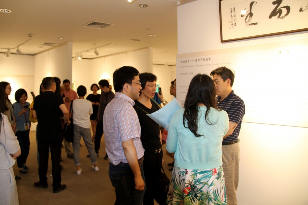 2016年6月13日下午,《向山而生——姜丹丹艺术作品展》在华东师范大学普陀校区图书馆开幕。此次展览由华东师范大学美术学系汪涤副教授策展,中国社会科学院哲学所刘悦笛副研究员担任学术顾问。华东师范大学图书馆馆长胡晓明教授、上海师范大学刘旭光教授、喜马拉雅美术馆赵松先生、《艺术世界》蔺佳女士等作为特邀嘉宾致辞。著名诗人(李)德武朗诵诗作、歌手孙嫣然等数十名艺术爱好者共同参加了展览的开幕式。姜丹丹在开幕式上向华东师范大学图书馆赠送一张题名《春天的草场地》的实验水墨绘画作品。