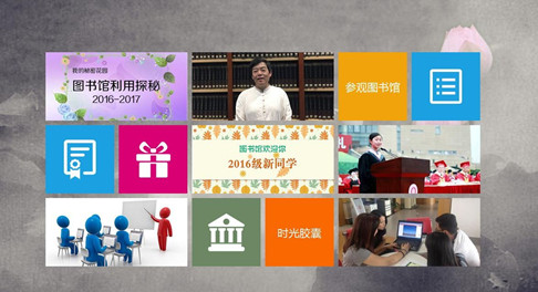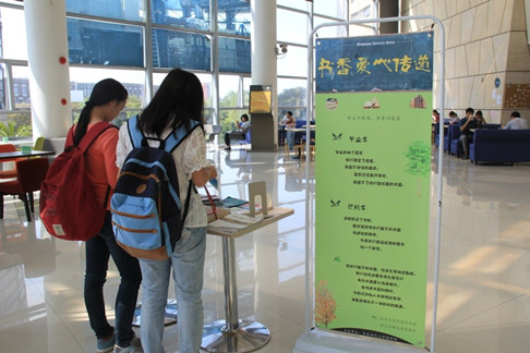 “智慧图书馆——定制美好时光的记忆”。我馆秉持以人为本的发展理念,不仅着重于资源服务的推广与技术的开发应用,而且包涵浓厚的人文关怀。迎新期间,为对新生进行生命教育及人文艺术熏陶,营造图书馆的书香文化氛围,我们推出了一系列迎新文化活动。