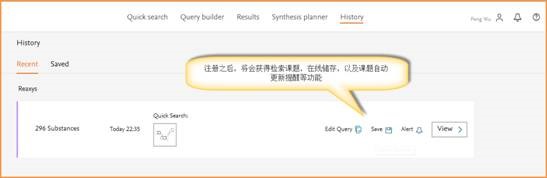 在此次恢复下载功能之后,强烈建议各位老师、同学,在使用REAXYS数据库的时候,先进行注册。注册之后,能享受‘在线储存检索内容’,‘课题更新自动提醒’等便捷的功能。