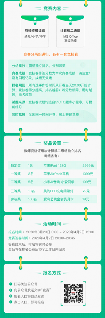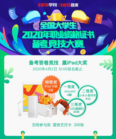 全国大学生2020年职业资格证书备考竞技大赛,欢迎全国大学生参赛赢iPad大奖。