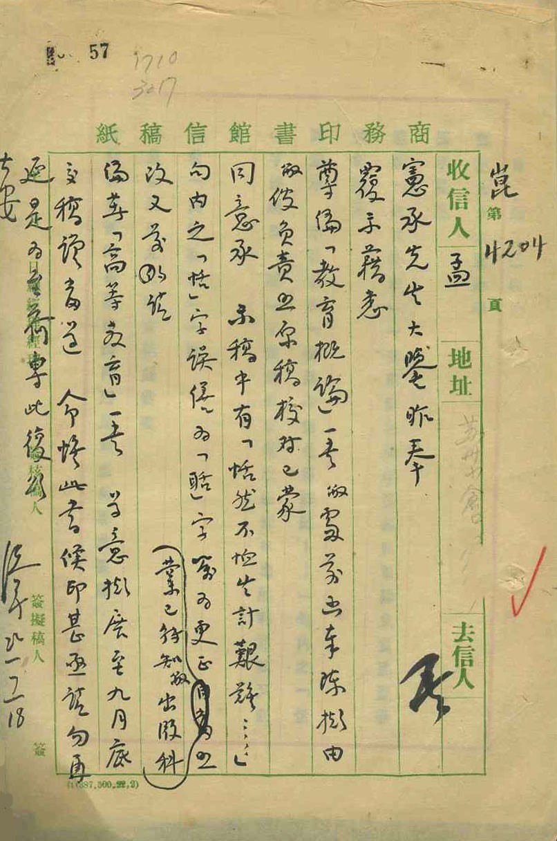 商务印书馆致孟宪承信札19330718