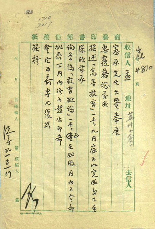 商务印书馆致孟宪承信札19330819(来源:网络)