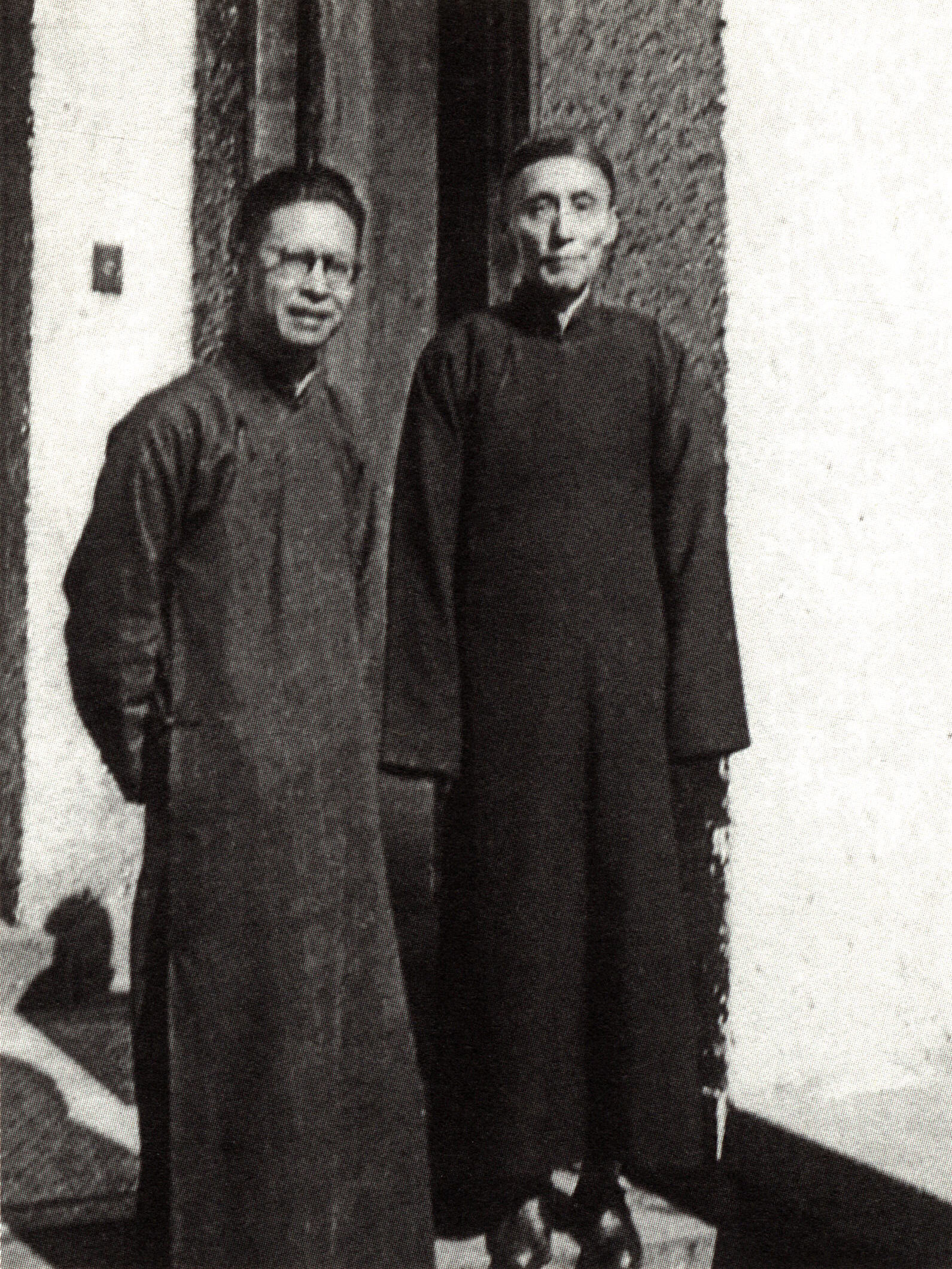 1943年9月施蛰存与父亲摄于愚园路岐山村寓所前门