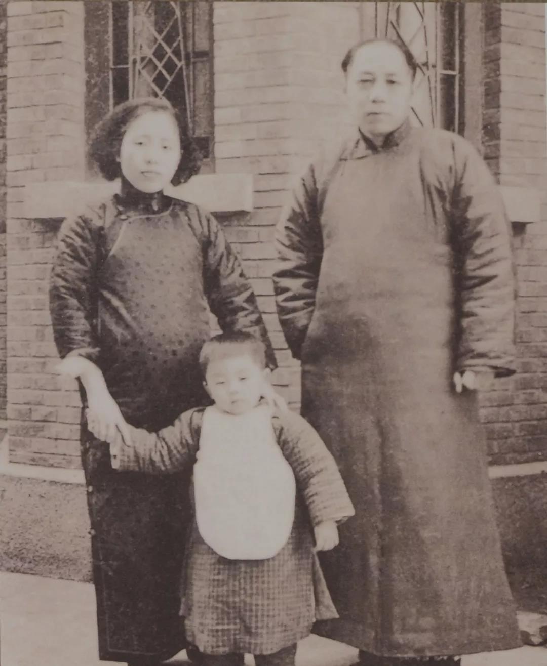 一九三三年王蘧常先生、沈静儒夫人与长子复孙合影与常德路春平坊