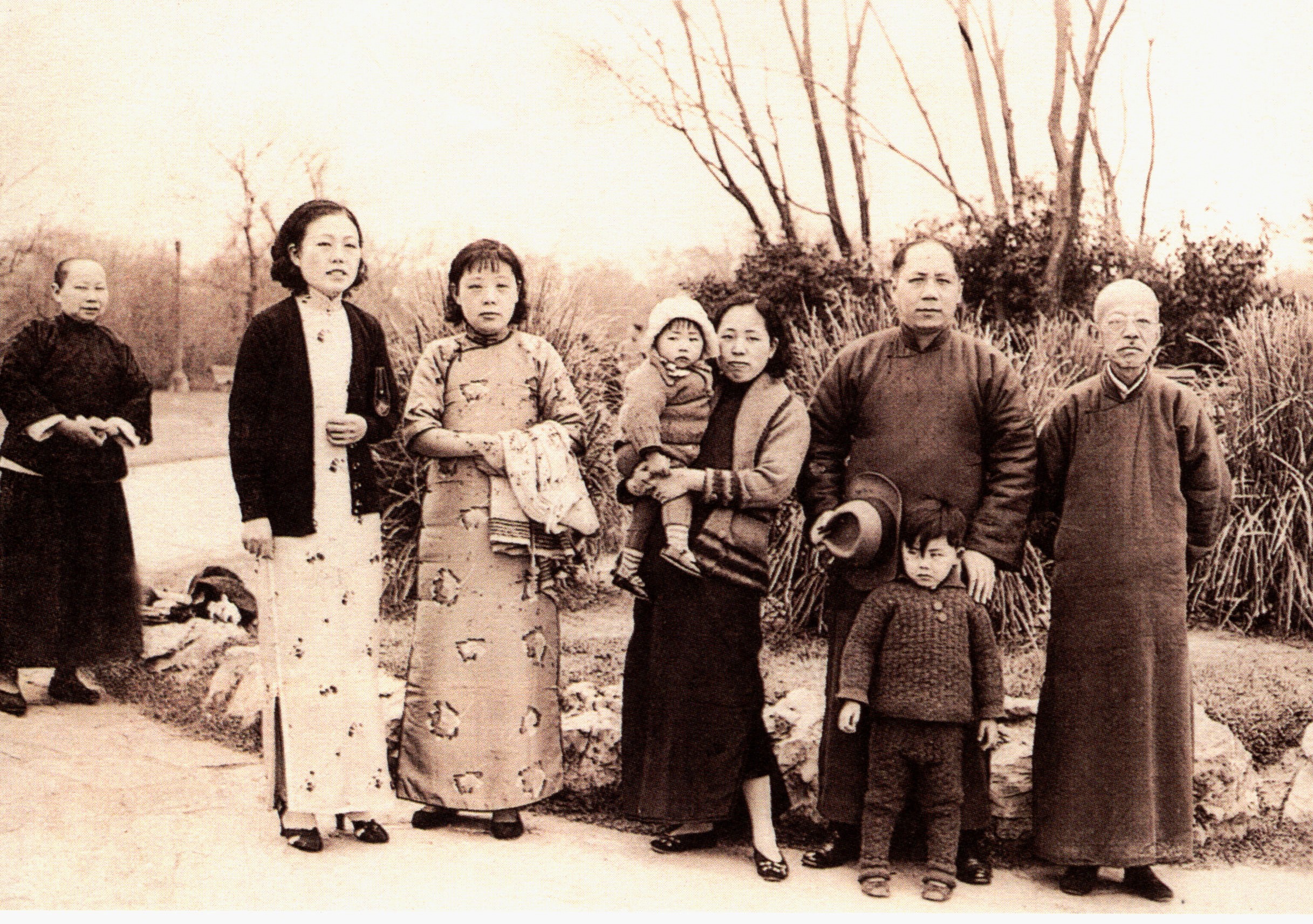 左起:王蘧常先生之母亲、王夫人沈静儒之堂妹(四妹与三妹)、王夫人抱女儿康孙、王蘧常先生及大儿复孙、王夫人之五叔(《海派代表书法家系列作品 王蘧常》)