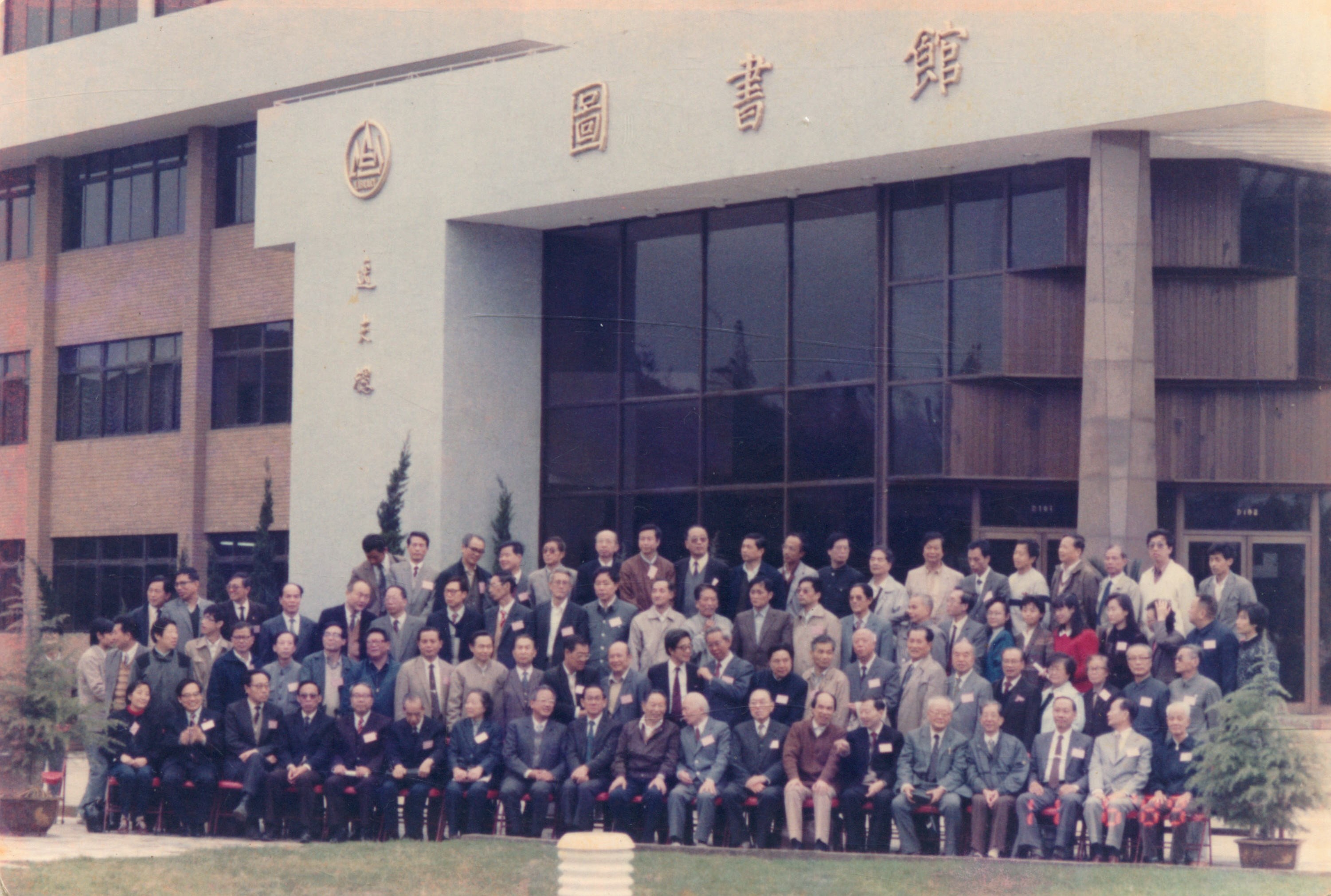 1991年5月,上海首届客家学研讨暨客家联谊会,参会代表在华东师大图书馆前合影(吴泽第一排中间)