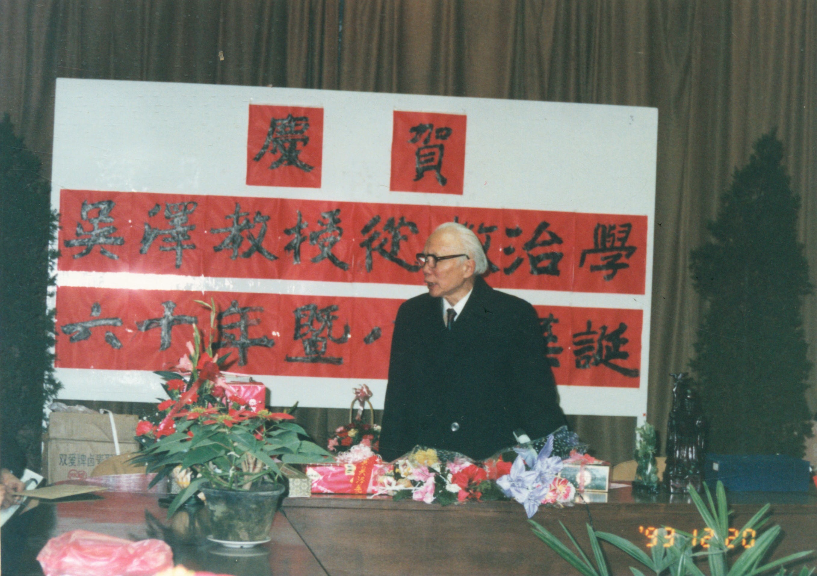 1993年12月20日,吴泽教授从教治学六十年暨八十华诞,吴泽教授致贺词