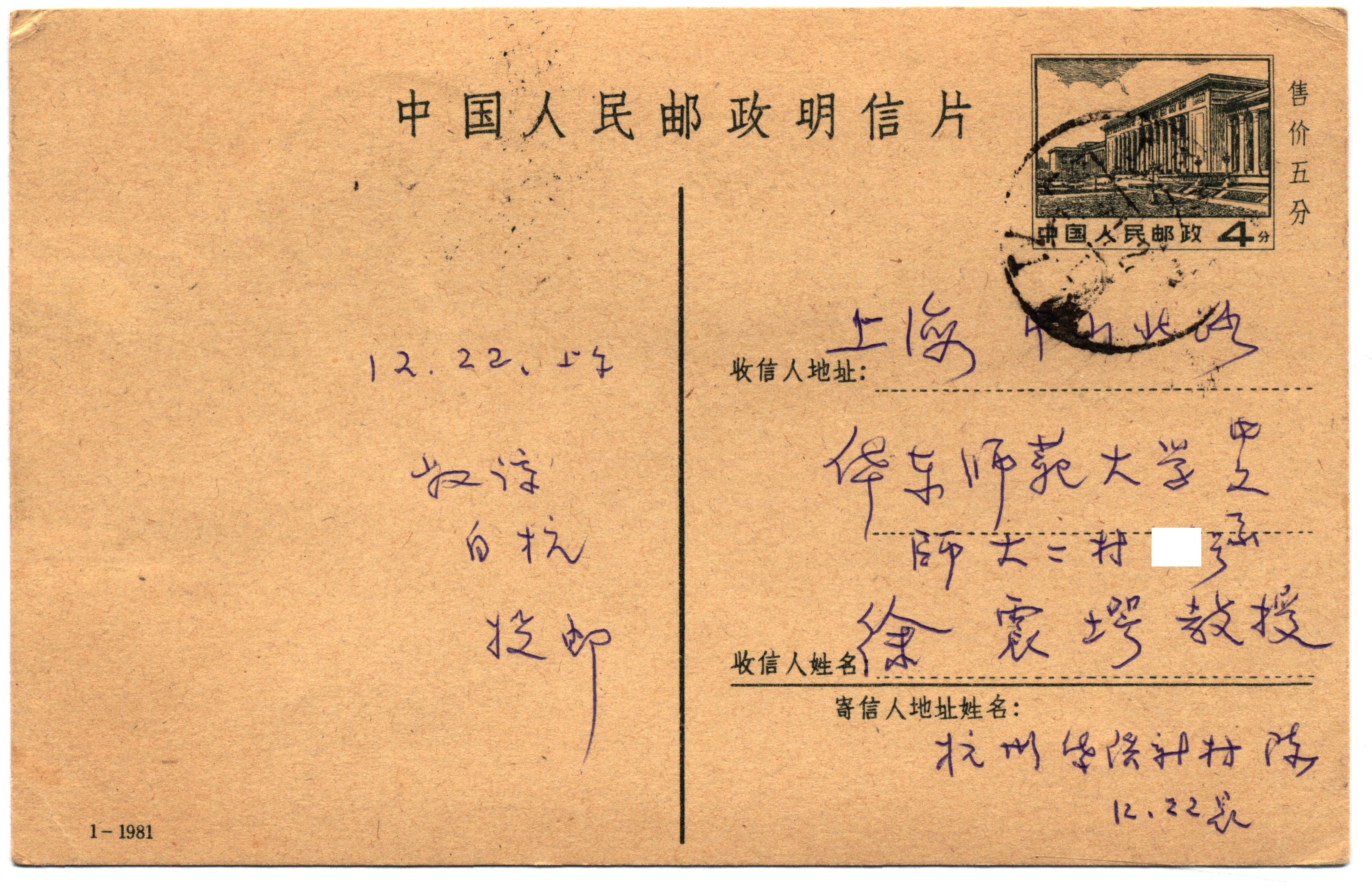 1982年12月22日陈训慈致徐震堮、胡焕庸的信(胡焕庸儿子胡企中提供)