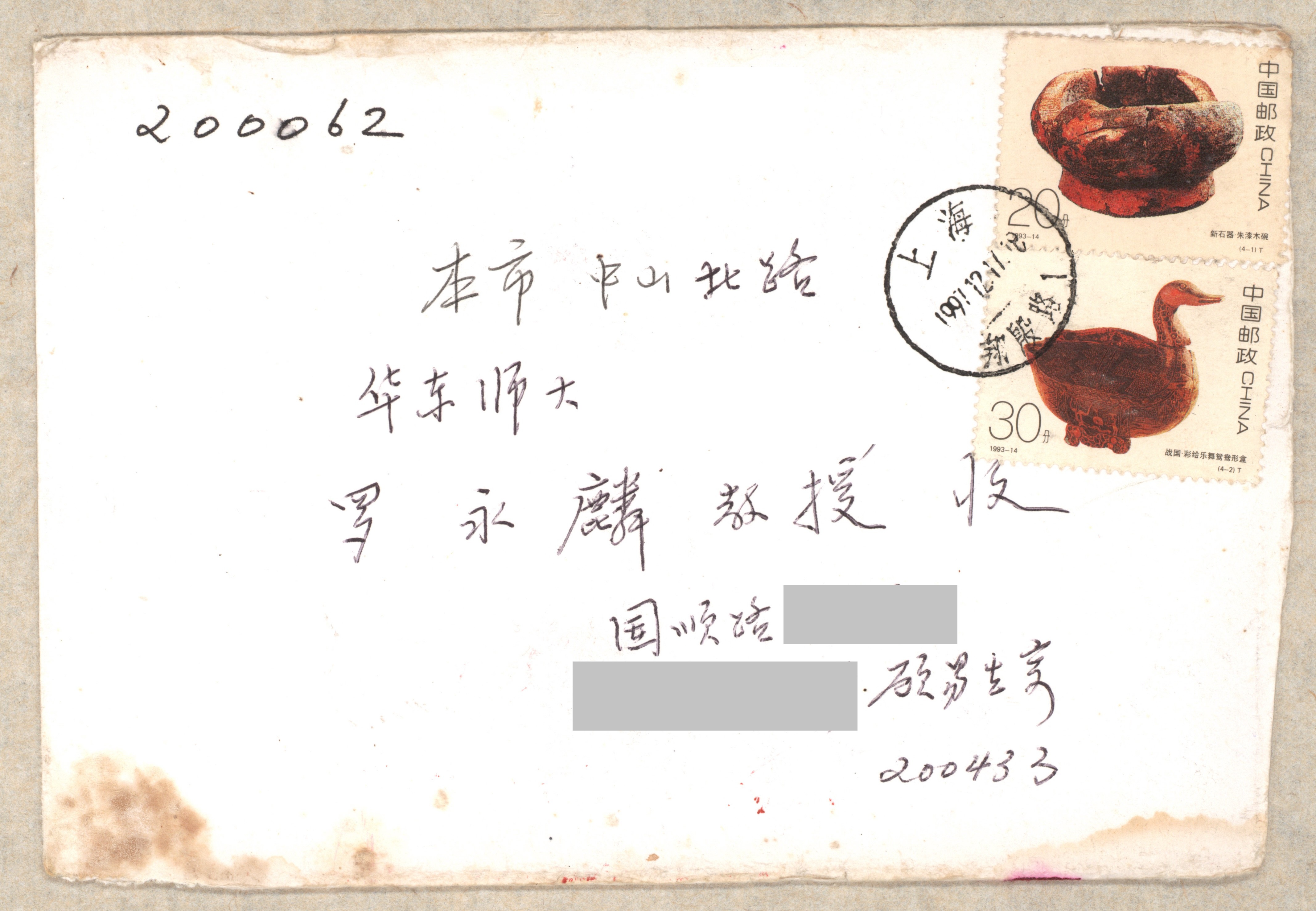1997年12月17日,顾易生致罗永麟信封
