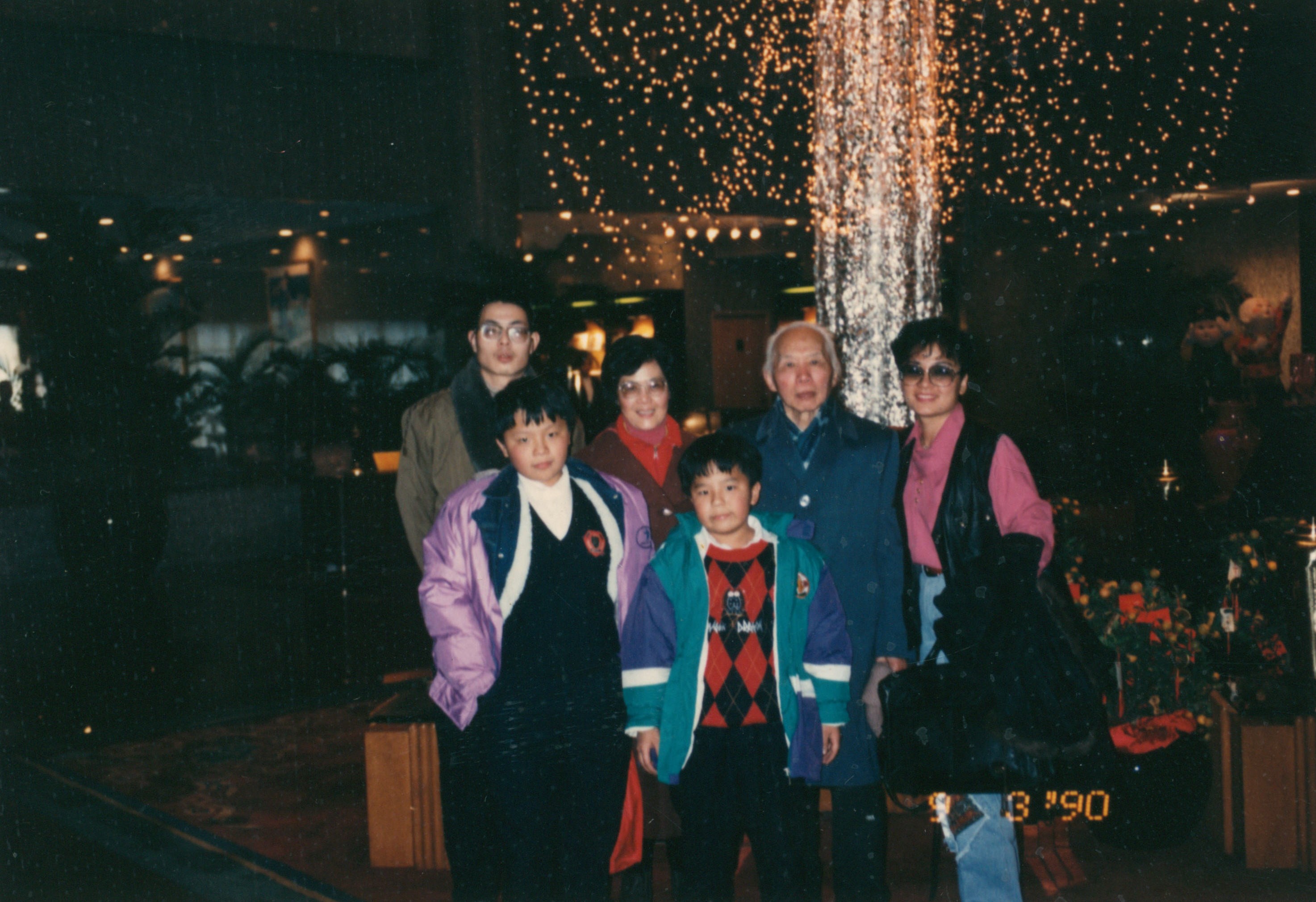 1990年9月3日,吴泽先生全家与他人合影