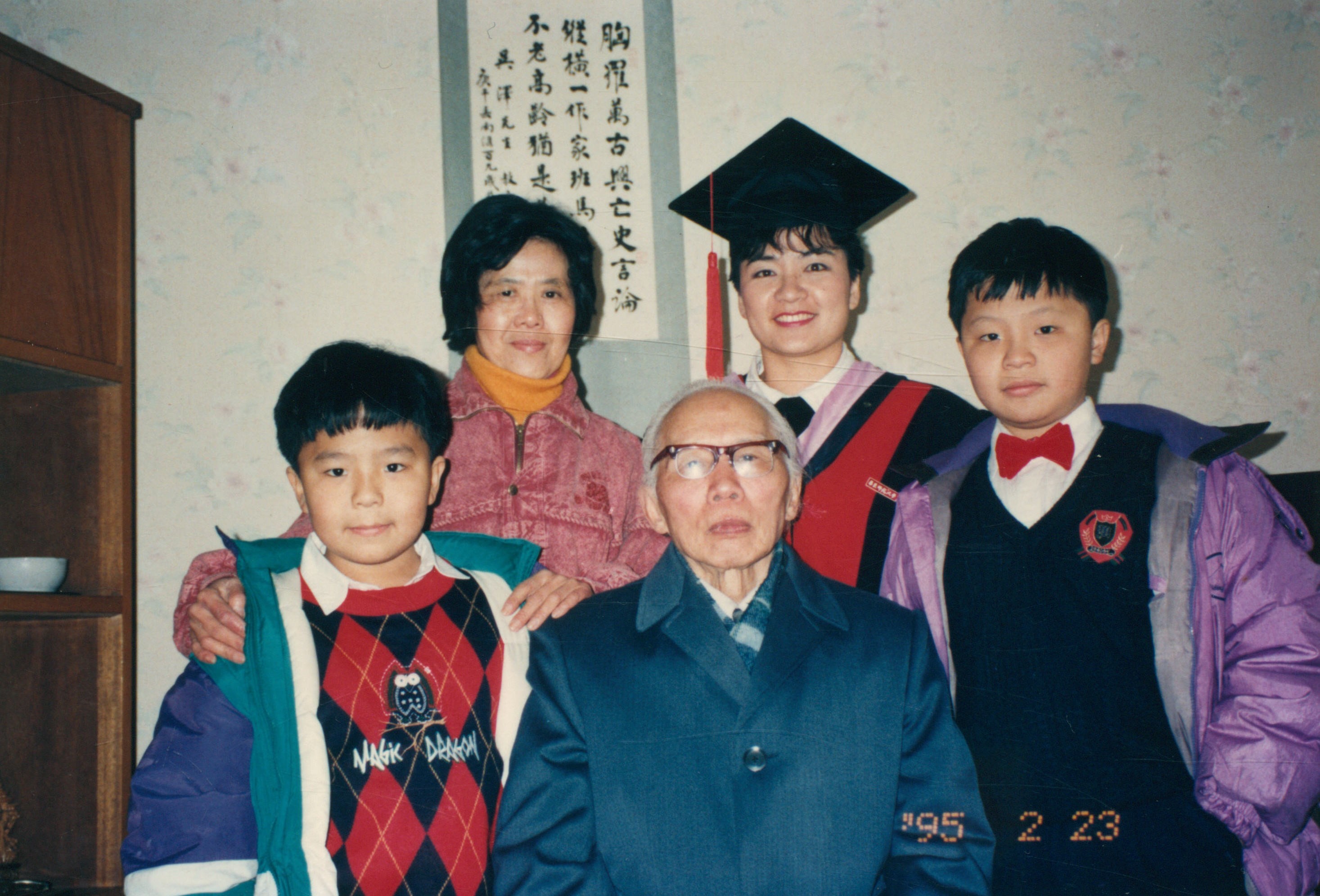 1995年2月23日,吴泽夫妇与他人合影