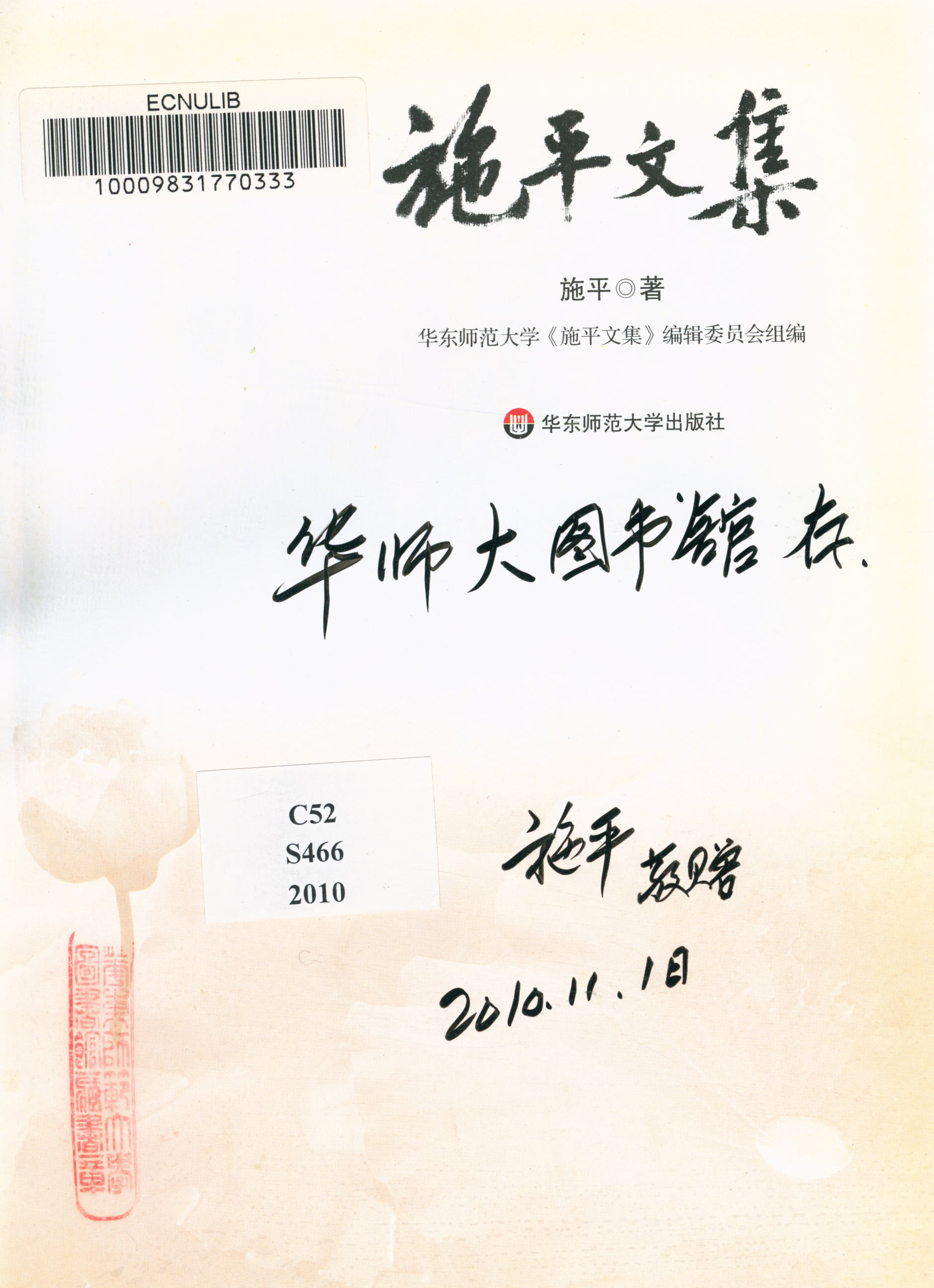 2010年11月1日施平签赠华东师大图书馆《施平文集》