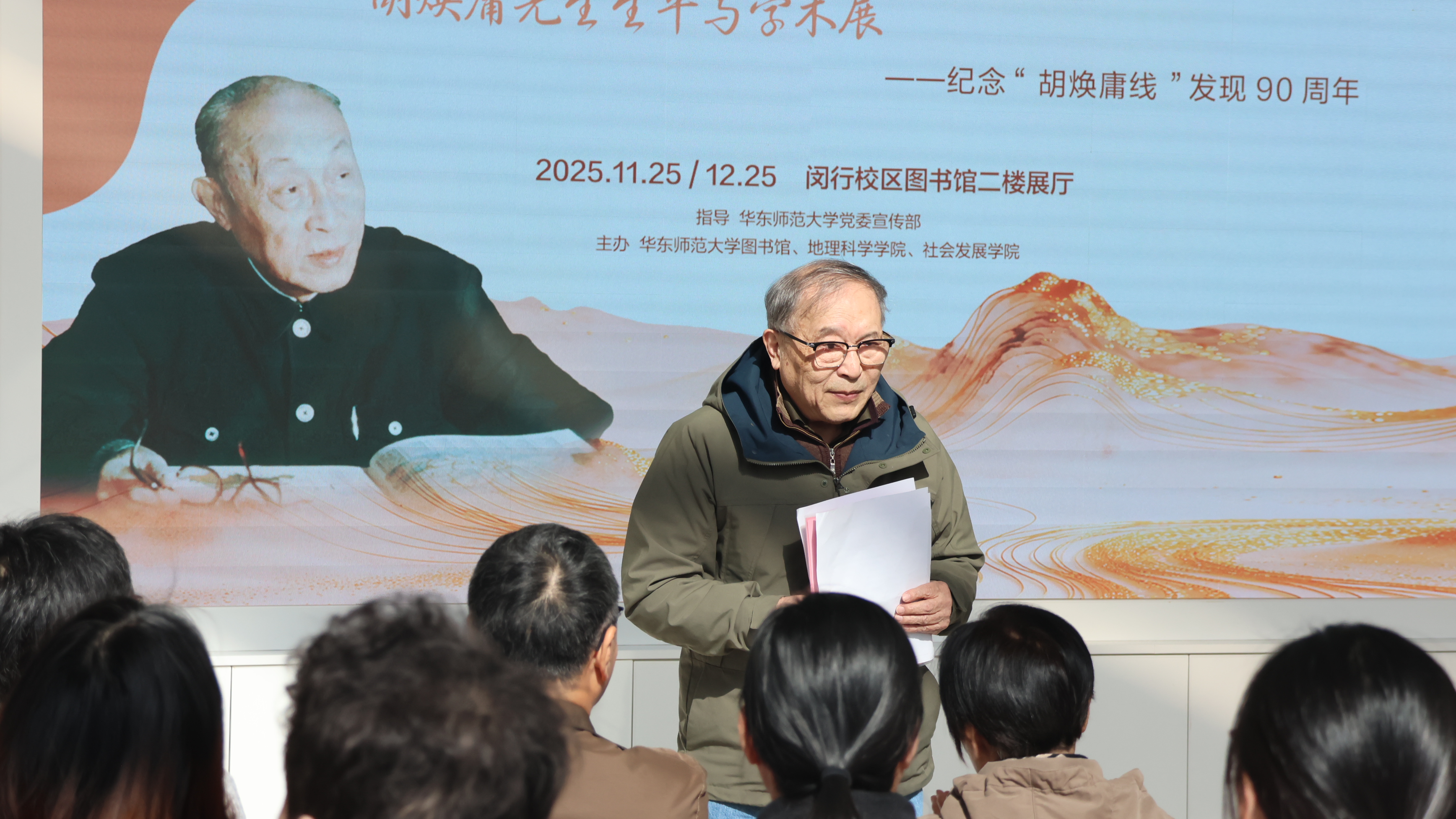 胡企中先生深情回顾了胡焕庸先生提出“胡焕庸线”的学术历程及其跨学科的卓越成就。他指出,胡焕庸先生始终秉持科学精神,将学术与国家发展紧密结合。随后,他分享了胡焕庸先生在苏州中学开设化工科的创新举措,并提及自己正是因为受到父亲影响,才选择在化工领域深耕,延续父亲的学术精神。最后,胡企中先生表达了对华东师范大学发扬传承胡焕庸先生精神的诚挚感谢,表达了对青年学子勇攀科学高峰的美好祝愿。