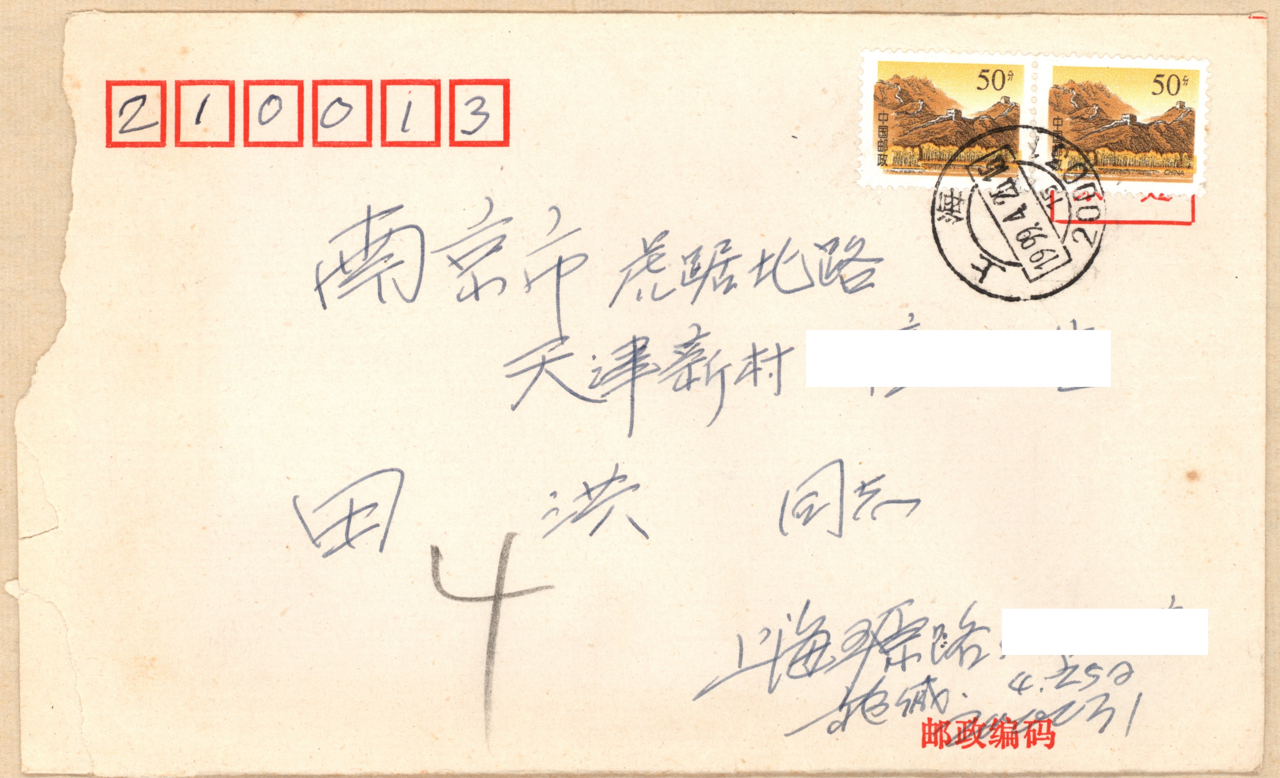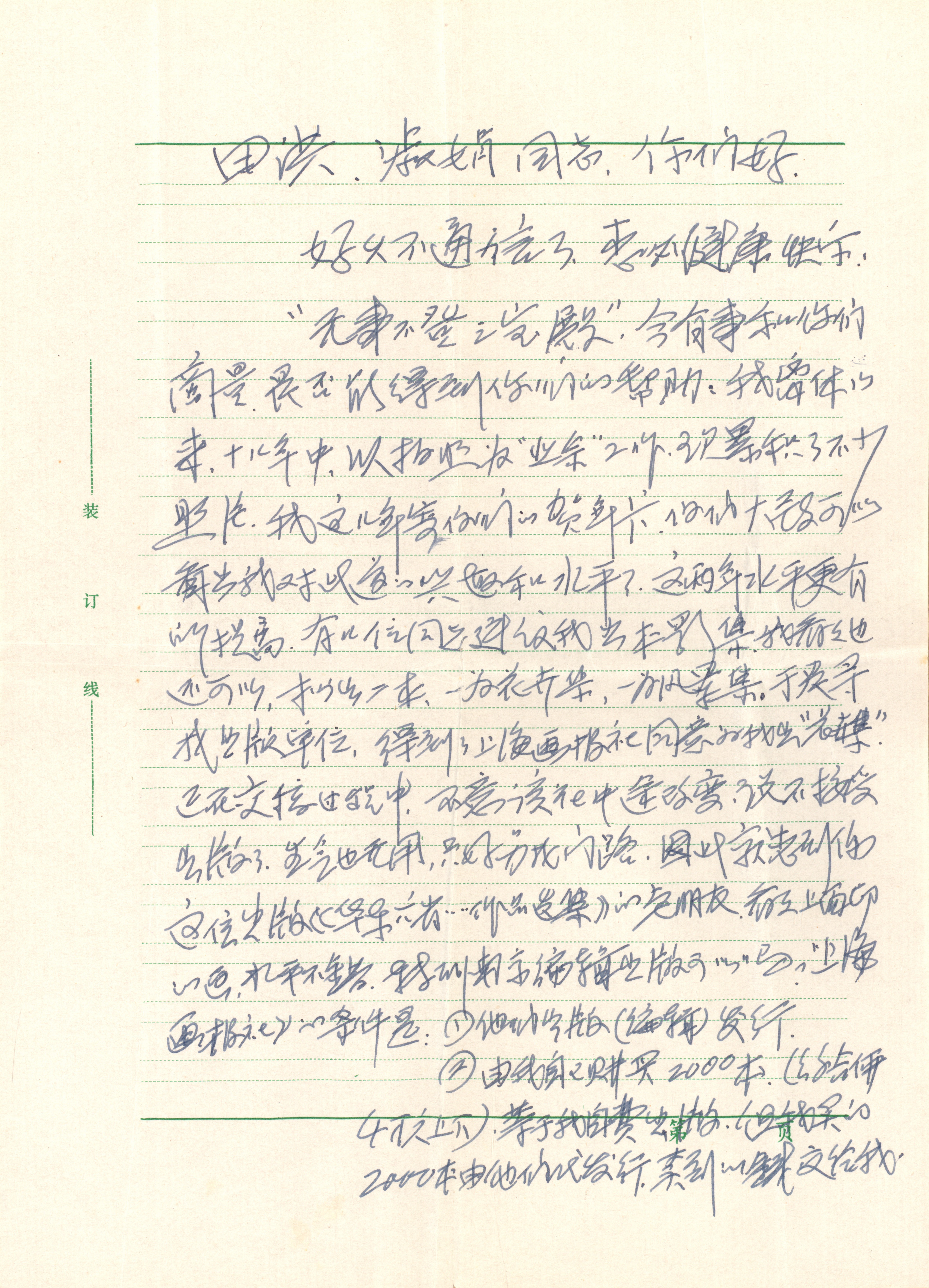 1999年4月25日施平、蒋炜夫妇致田洪、李淑娟信件