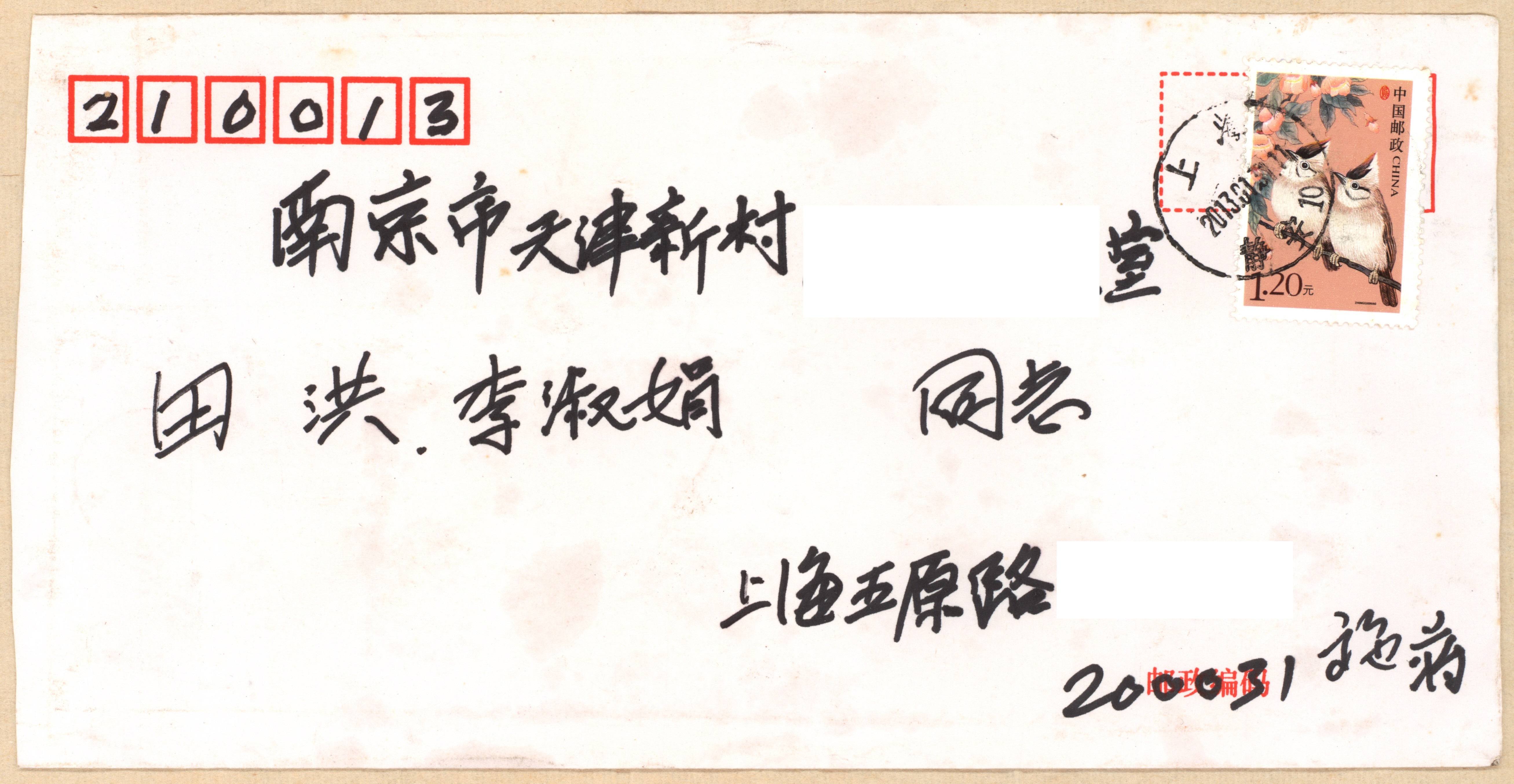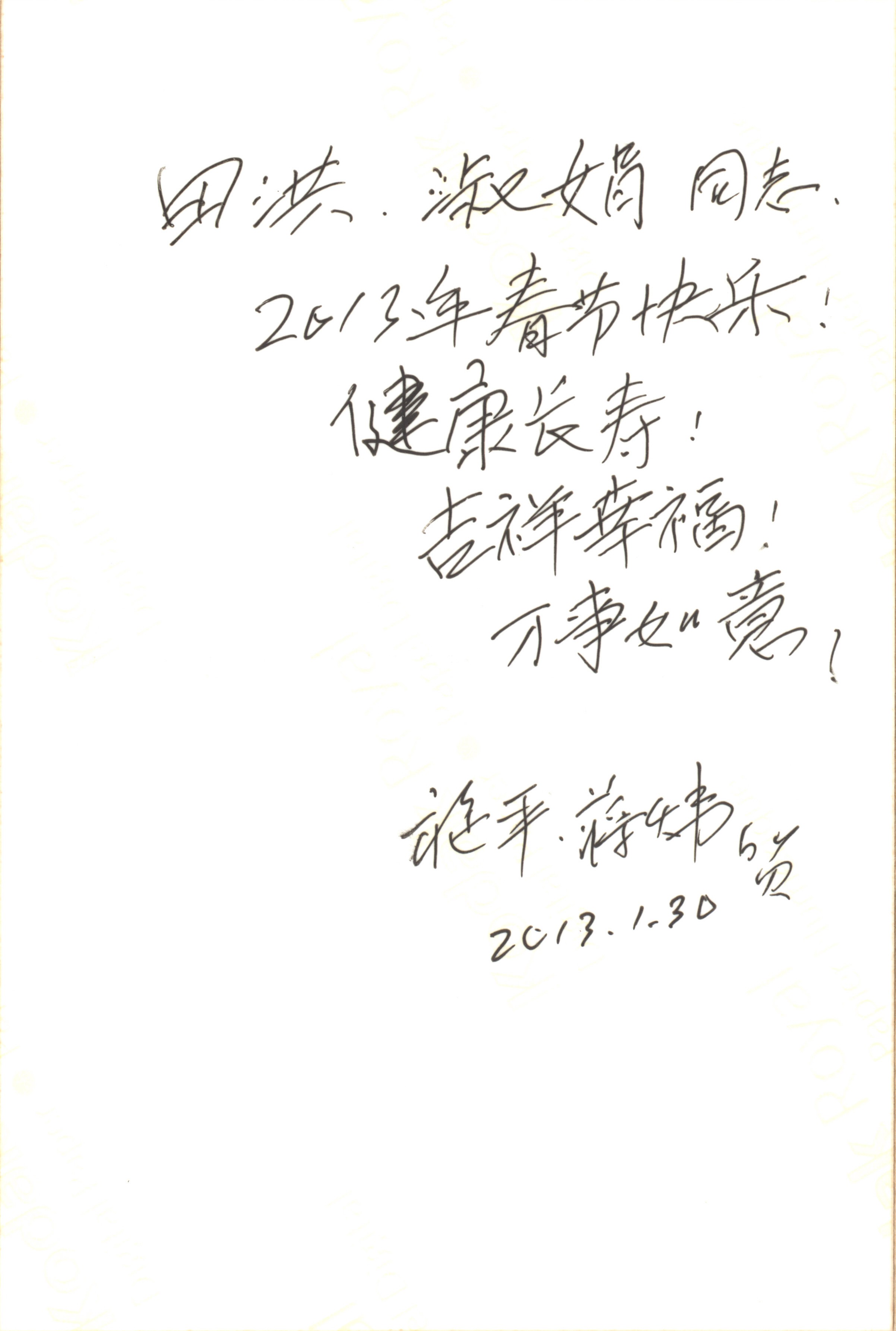 2013年1月30日施平、蒋炜夫妇致田洪、李淑娟贺卡