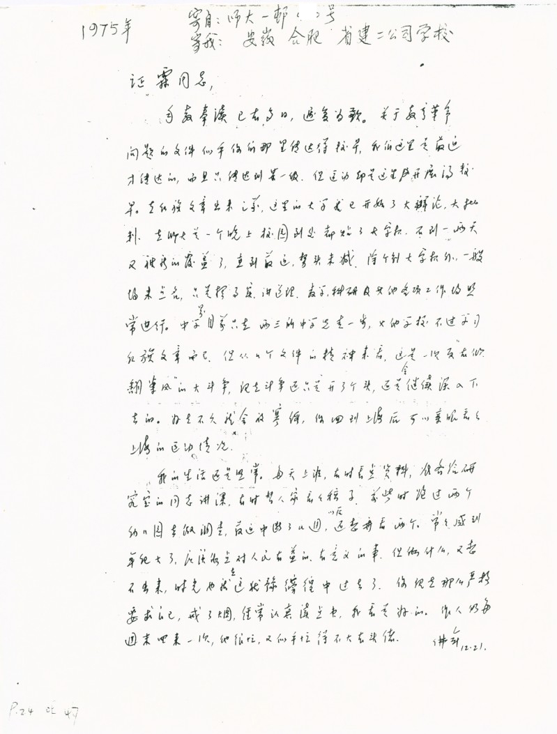 刘佛年致丁证霖信札1975.12.21