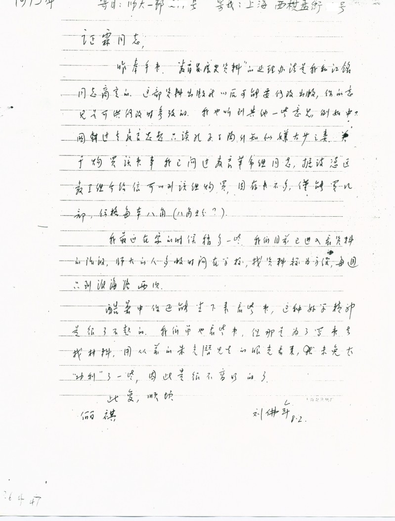 刘佛年致丁证霖信札1973.8.2
