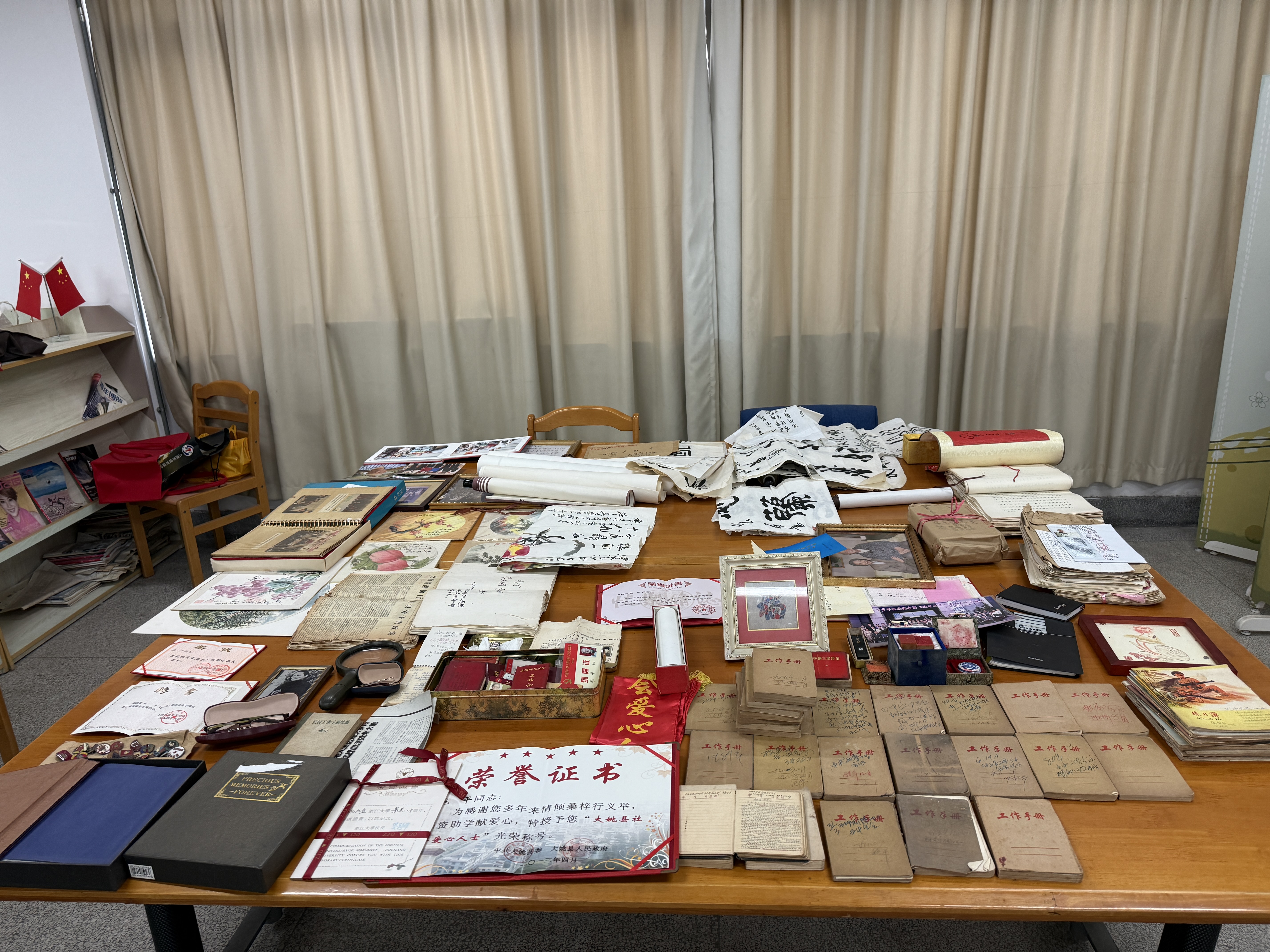 2025年5月23日施平家属施小平先生向华东师大手稿馆捐赠其父物品(印章、手稿、书画、笔记、证书、照片、家具等)