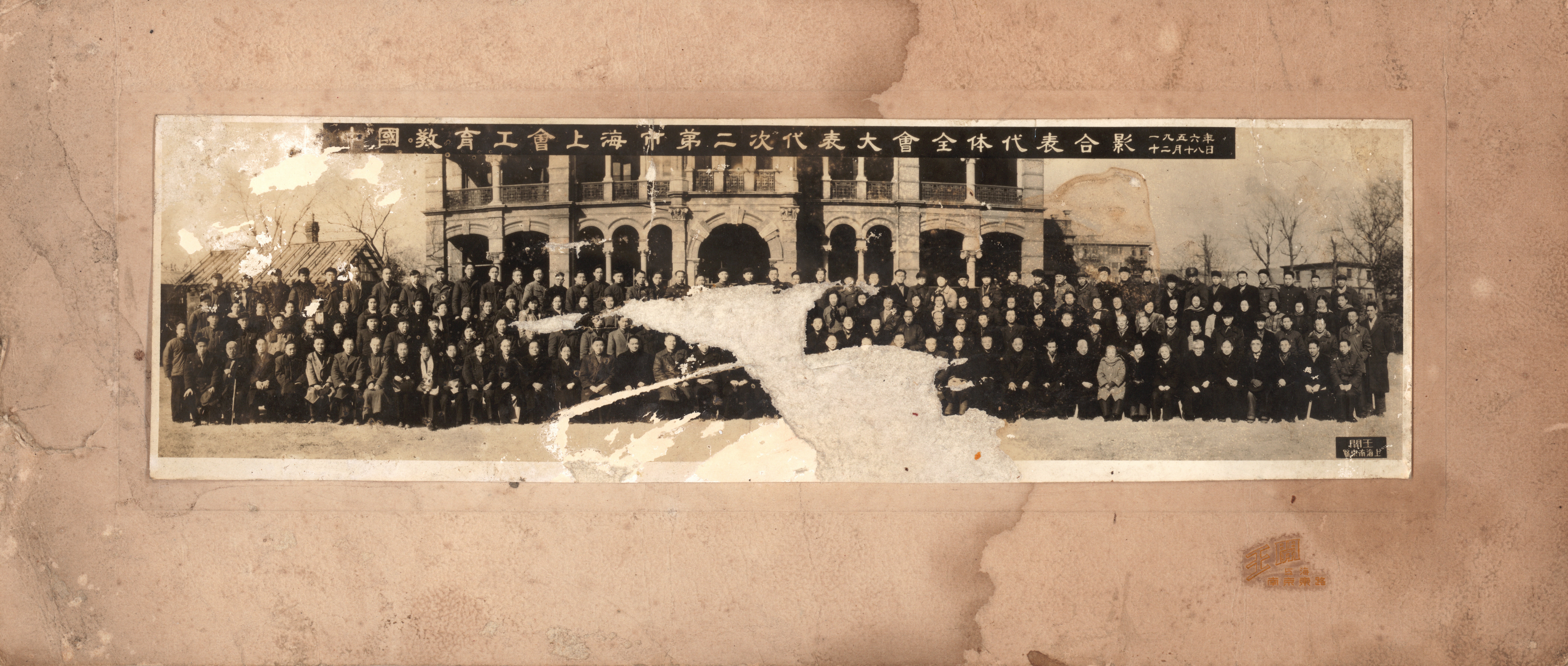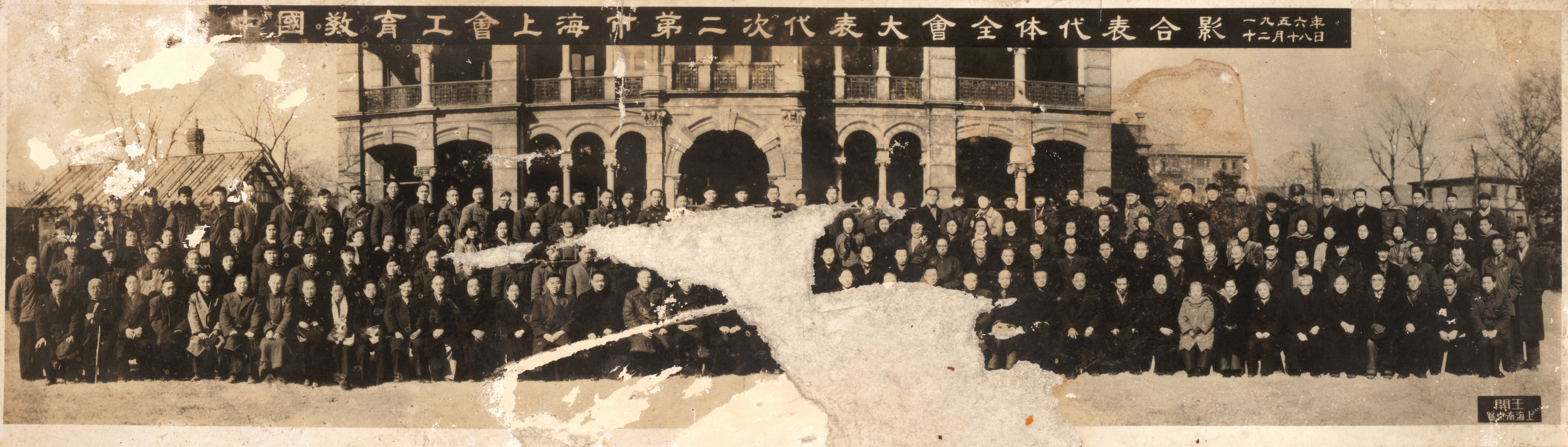 1956年12月18日中国教育工会上海市第二次代表大会全体代表合影,前排左7廖世承、前排右12刘佛年