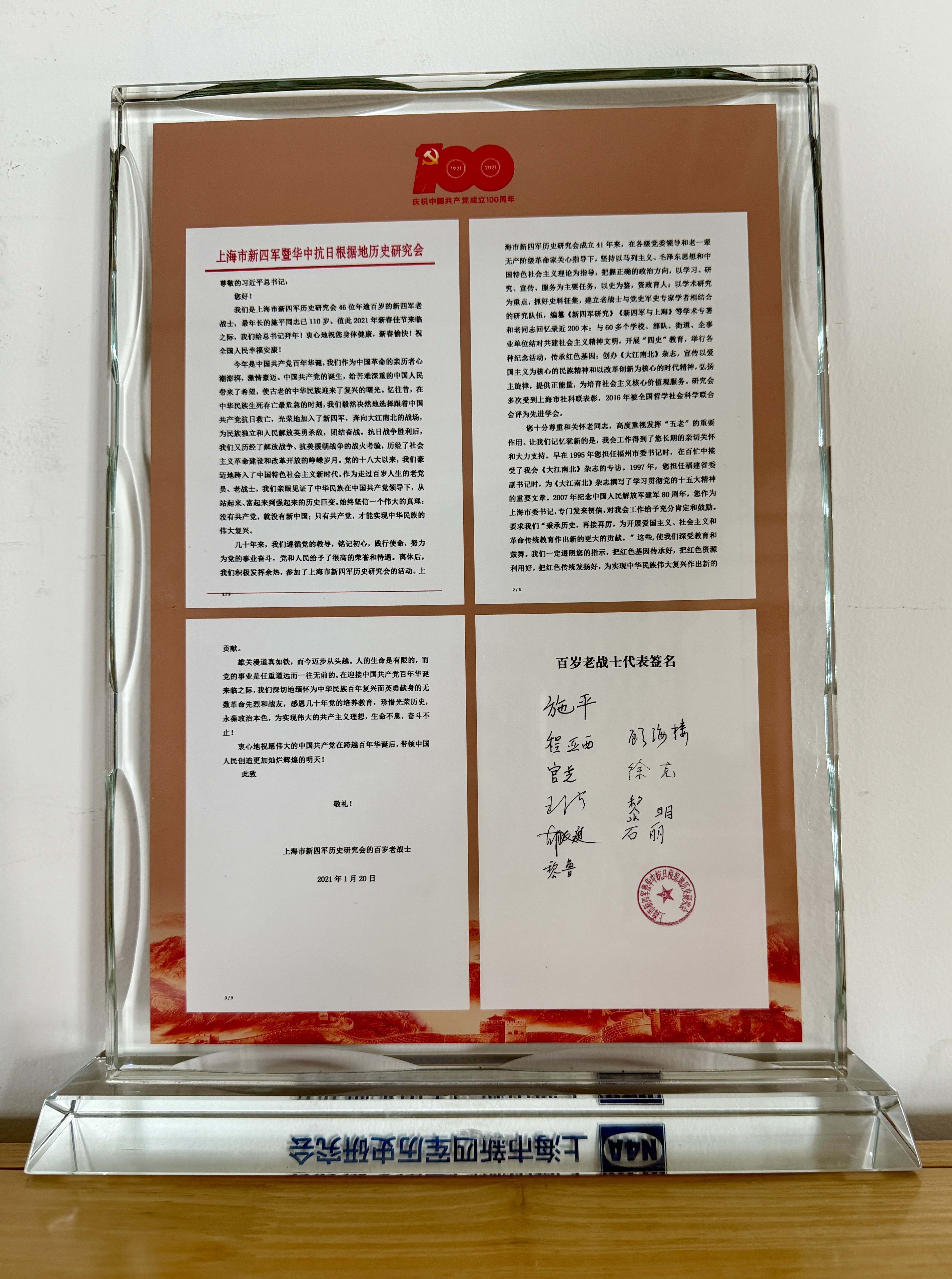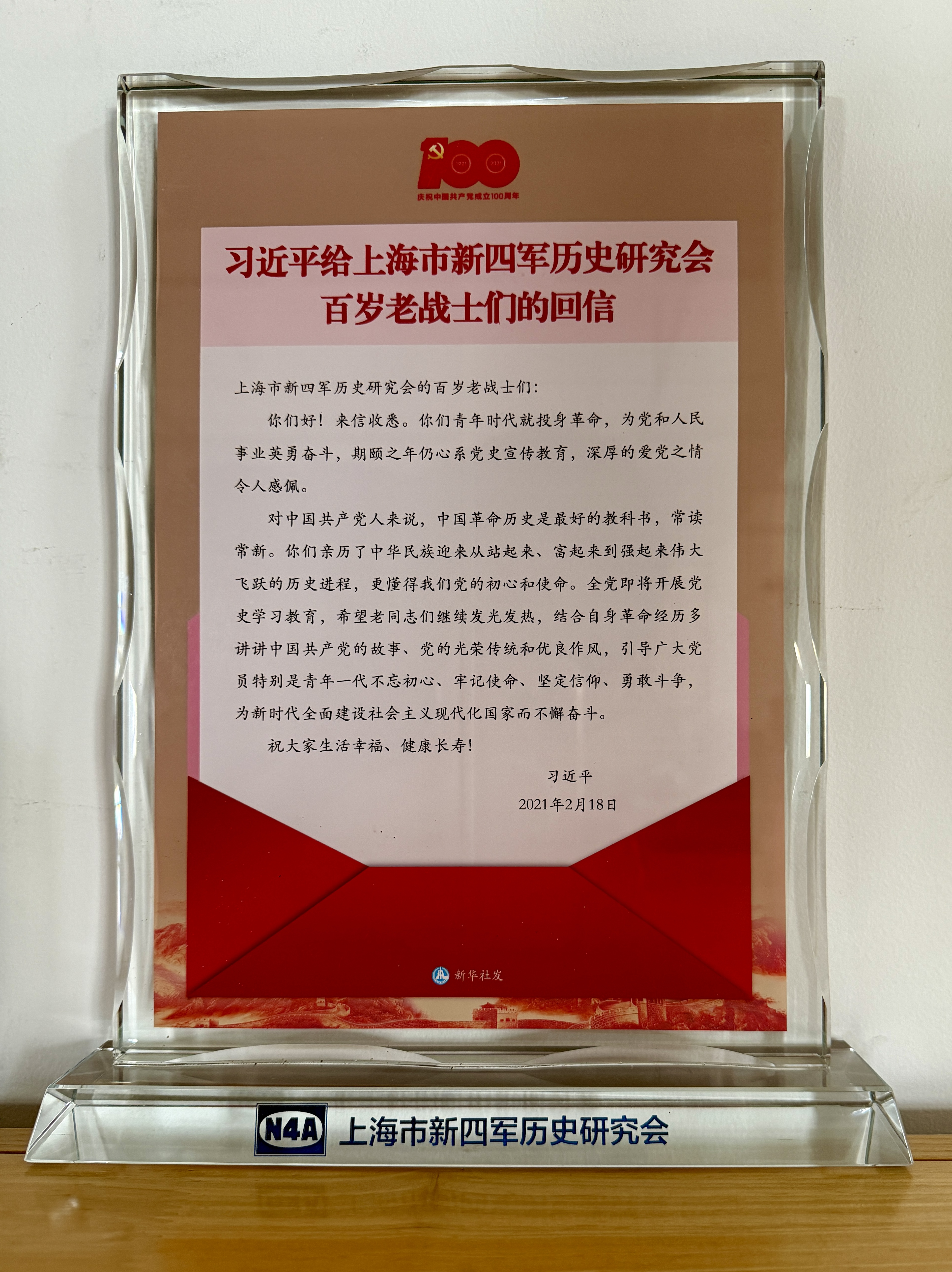 2021年2月18日习近平给上海市新四军历史研究会百岁老战士们的回信(庆祝中国共产党成立100周年)