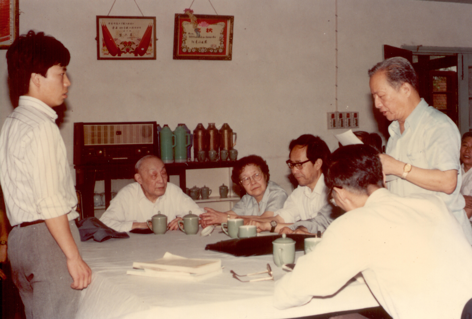 1980年代胡焕庸和博士生杨云彦(左边站立者)等合影