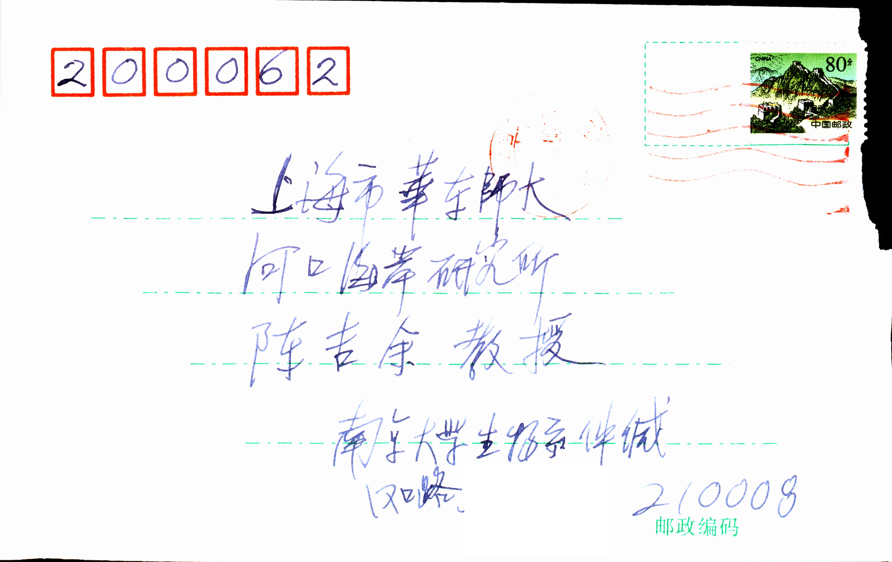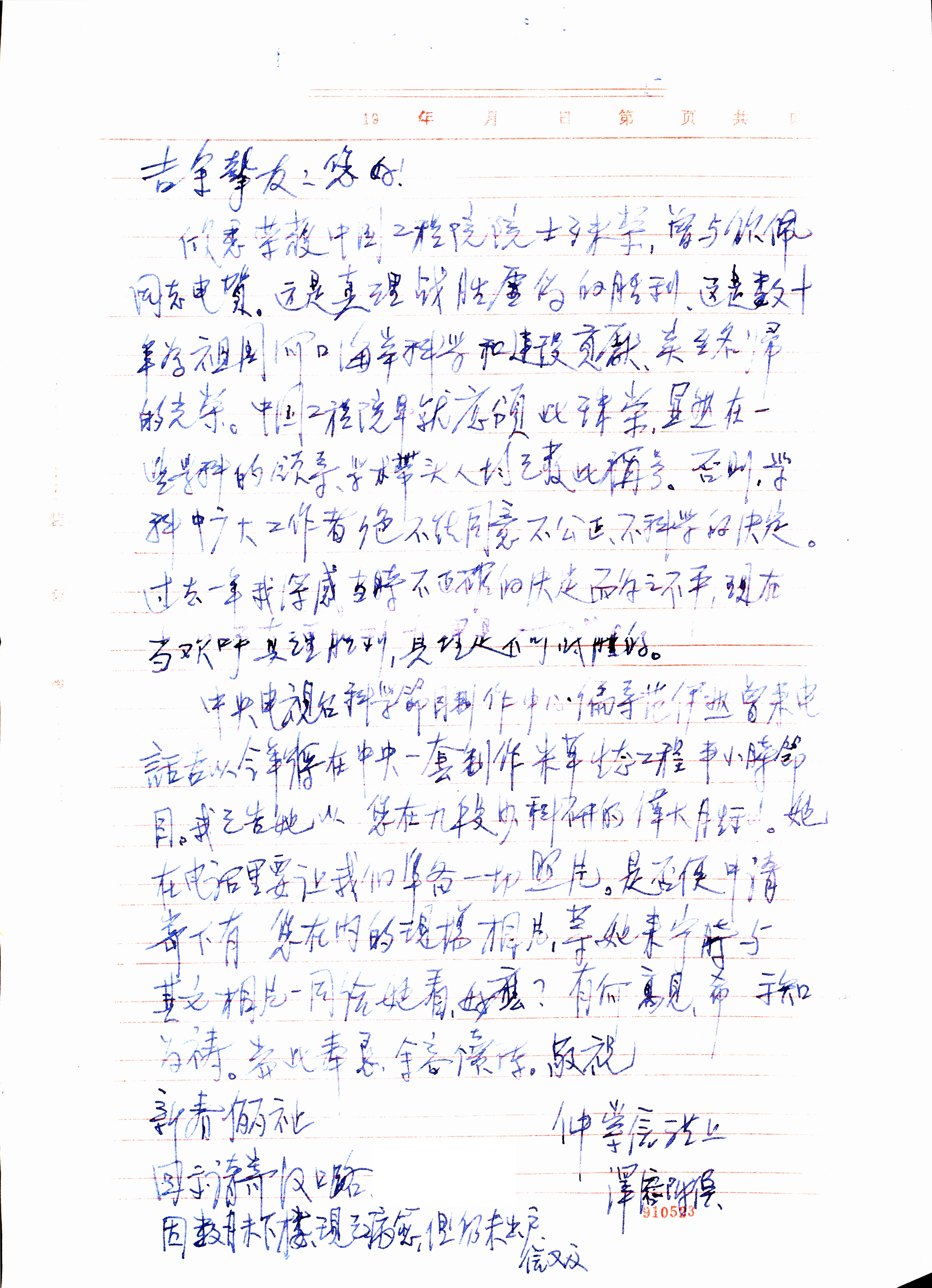 1999年12月日仲崇信给陈吉余的手稿信件