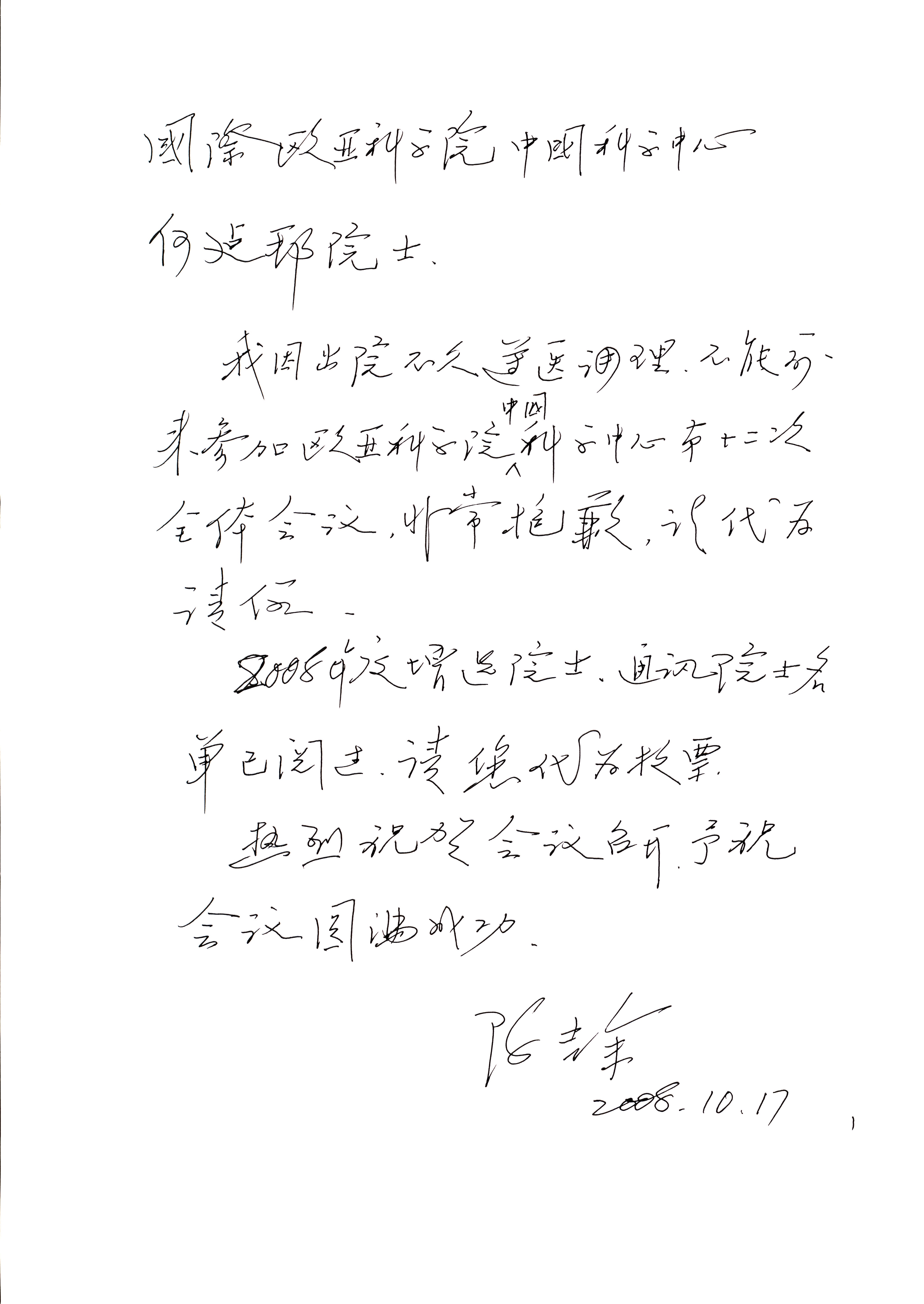 2008年10月17日陈吉余给何建邦的手稿请假信