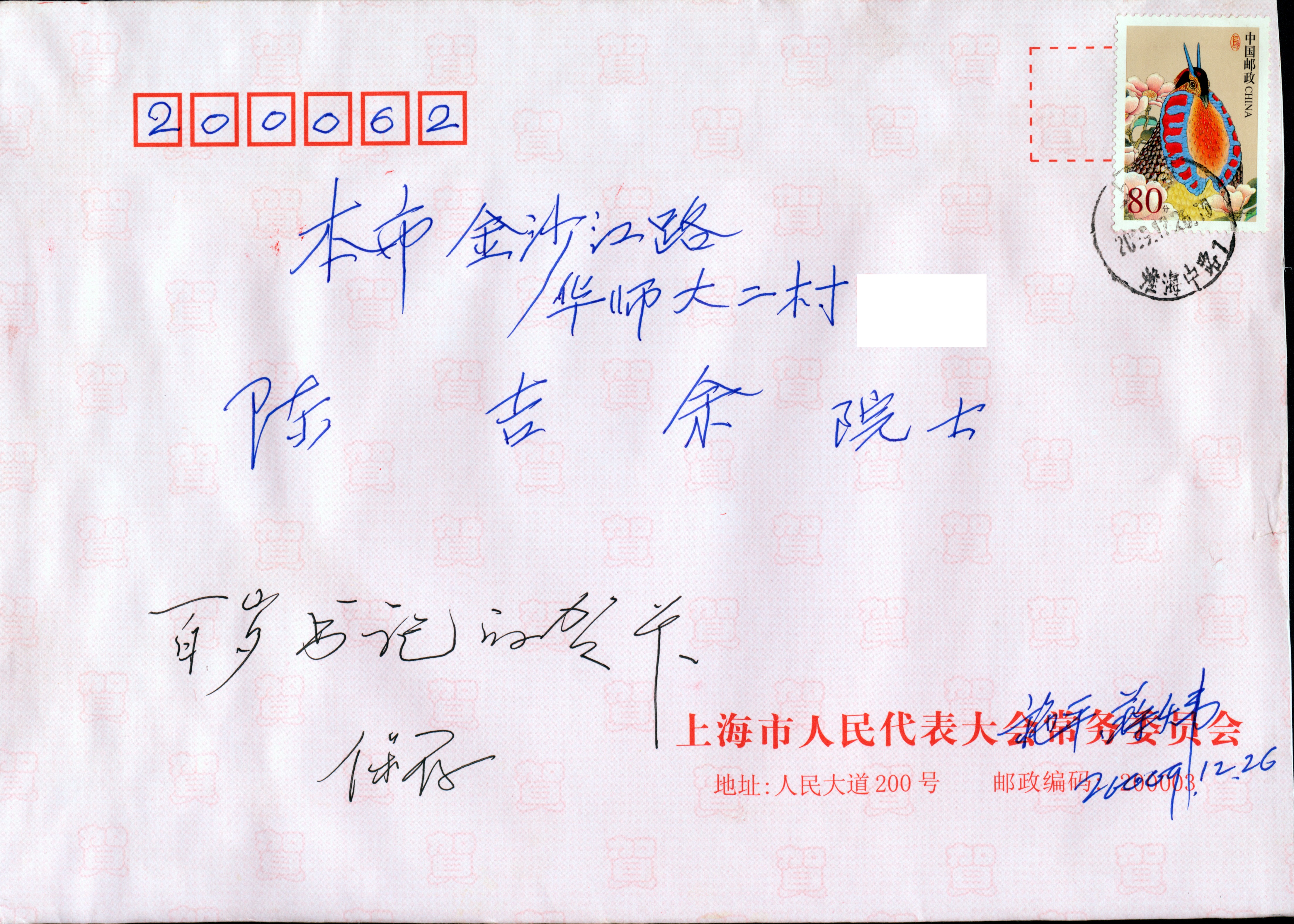 2009年12月26日施平给陈吉余的贺卡