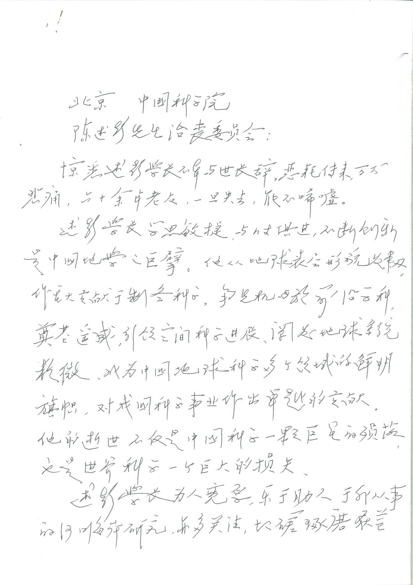 摘要:沉痛悼念师弟陈述彭院士逝世称之为中国地学之巨擘(附给家属慰问信及泣拜联)