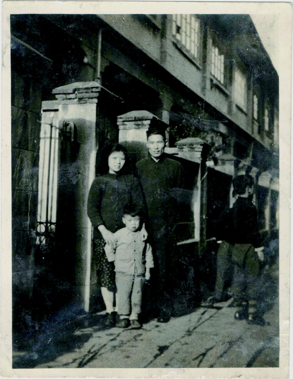 1948年褚绍唐先生夫妇和小儿子褚君浩在上海宝安路寓所