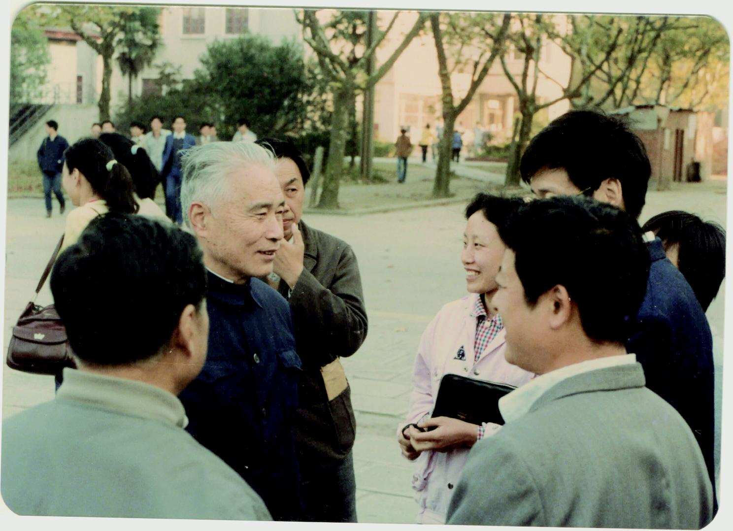 1985年褚绍唐先生和高校地理教育助教进修班学员交谈