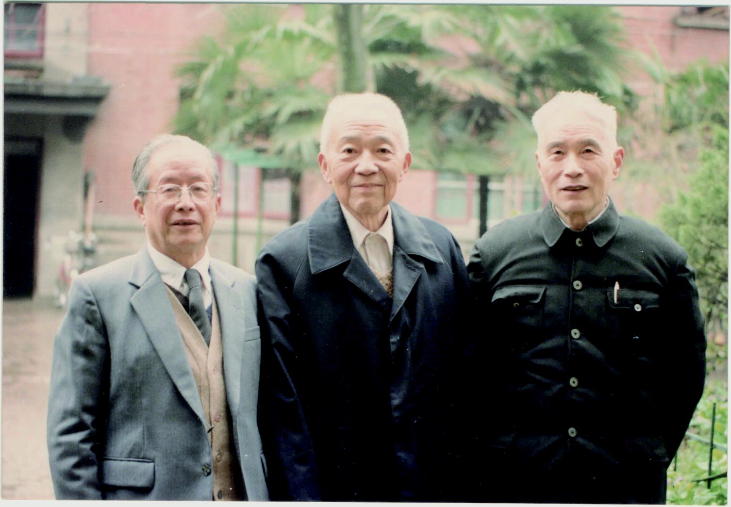 褚绍唐先生与好友德庚、钱今昔(左一)(1992年华师大一村)