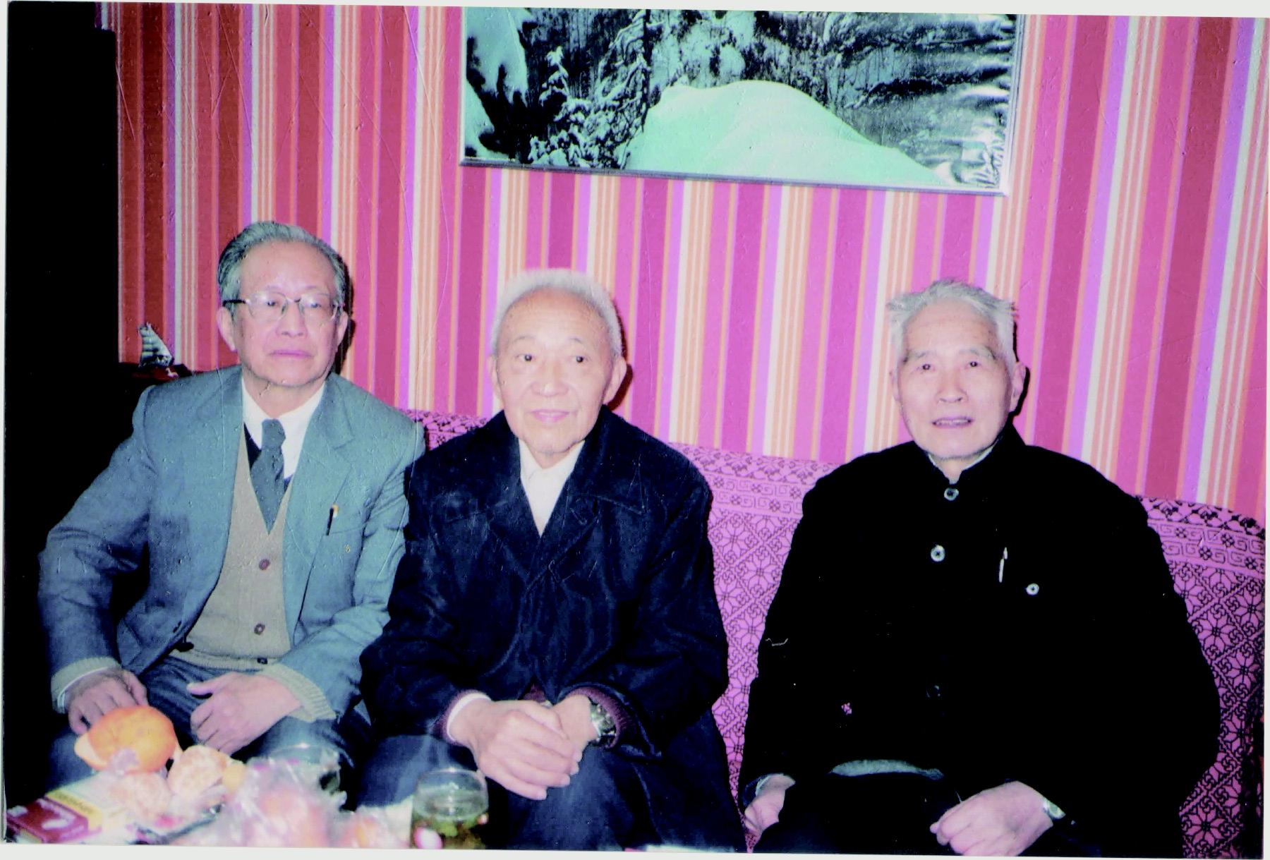 褚绍唐先生与好友德庚、钱今昔(1992年华师大一村)