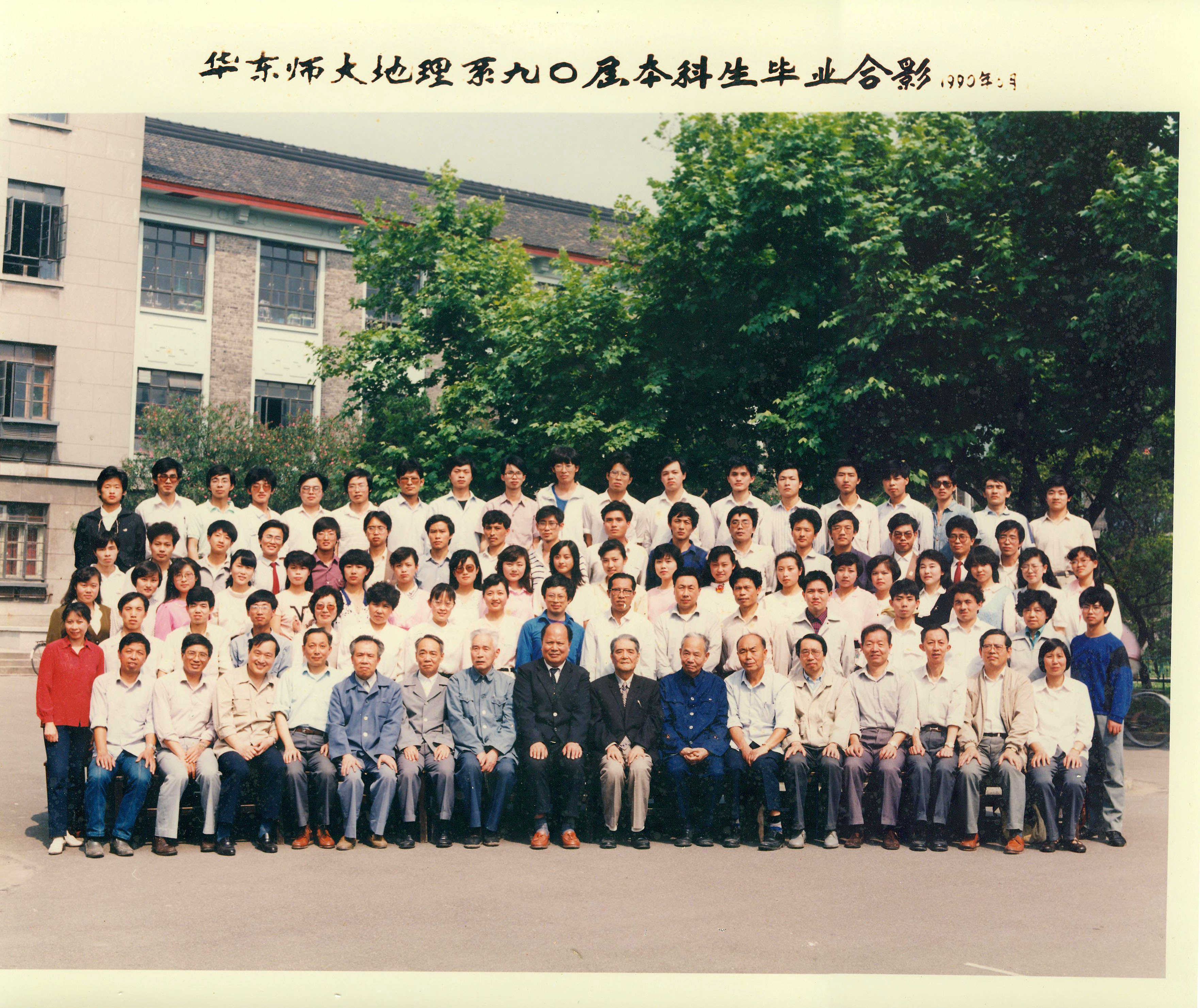 1990届华东师大地理系本科生毕业合影,褚绍唐(前排右10)