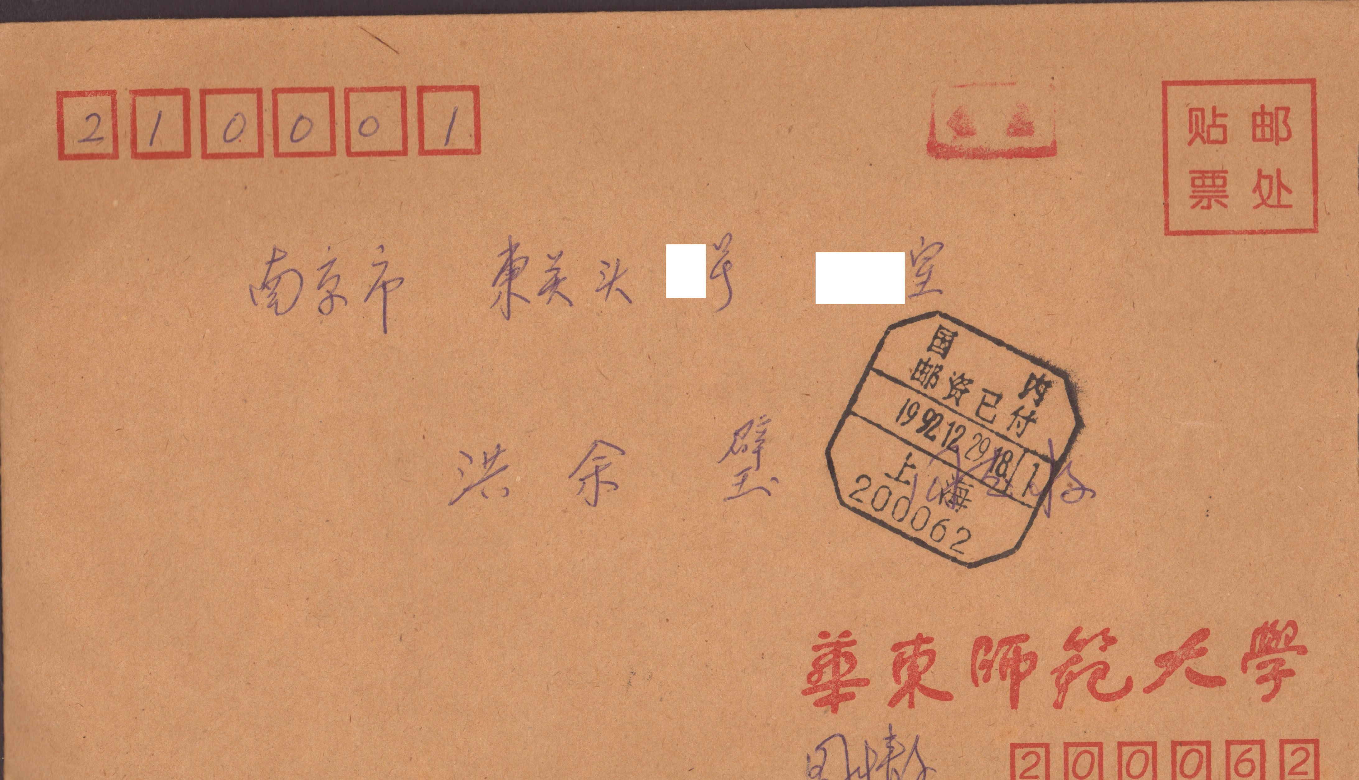 1992年12月28日华东师范大学图书馆学情报学系邵友亮致信洪余璧有关举办洪范五诞辰100周年纪念会事宜(来源:东南大学图书馆)