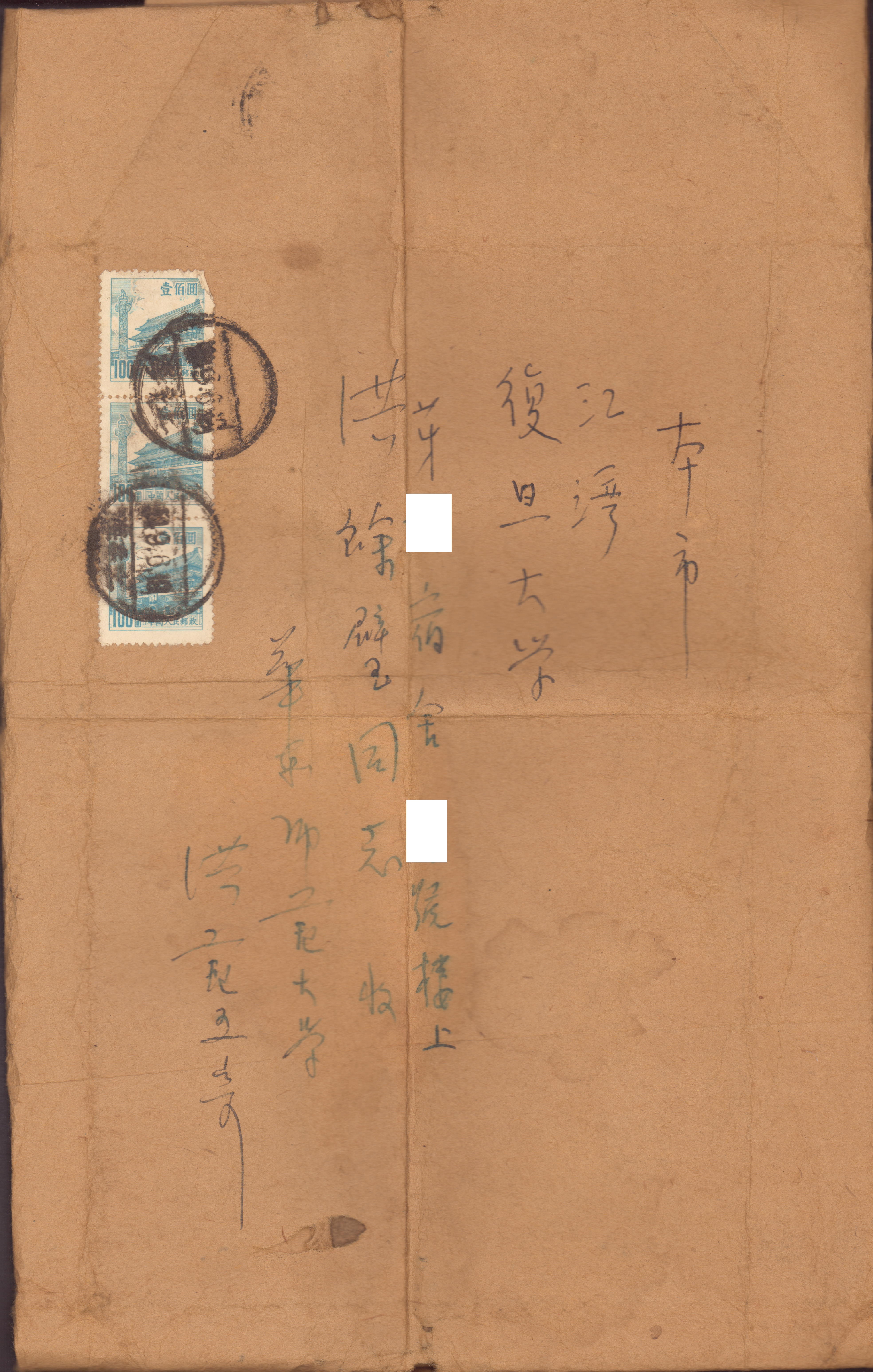 1954年洪范五致长女洪余璧信封(来源:东南大学图书馆)