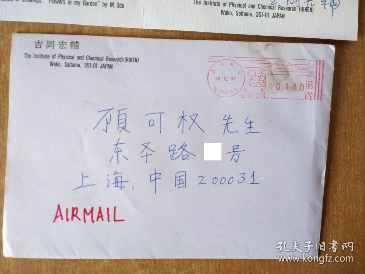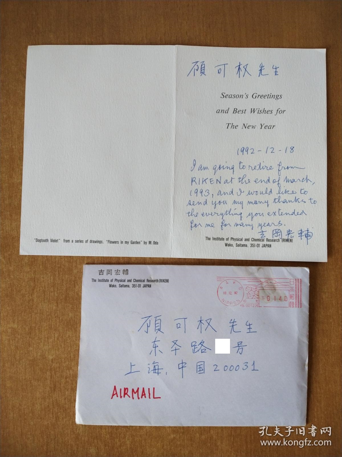 1992年12月18日日本学者吉冈宏辅致顾可权贺卡(来源:孔夫子旧书网)