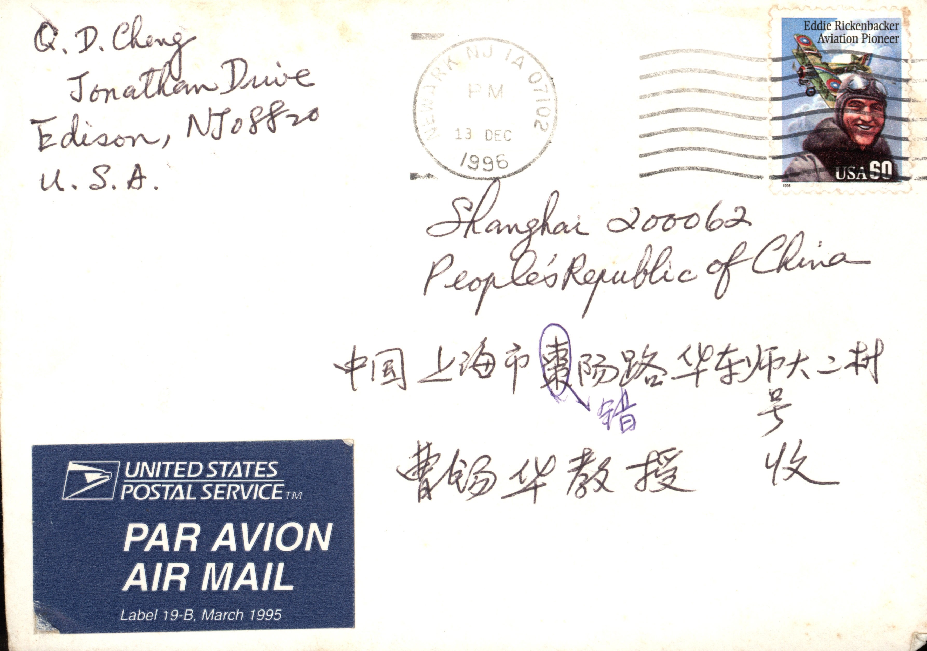 1996年10月13日Q.D.Cheng致曹锡华