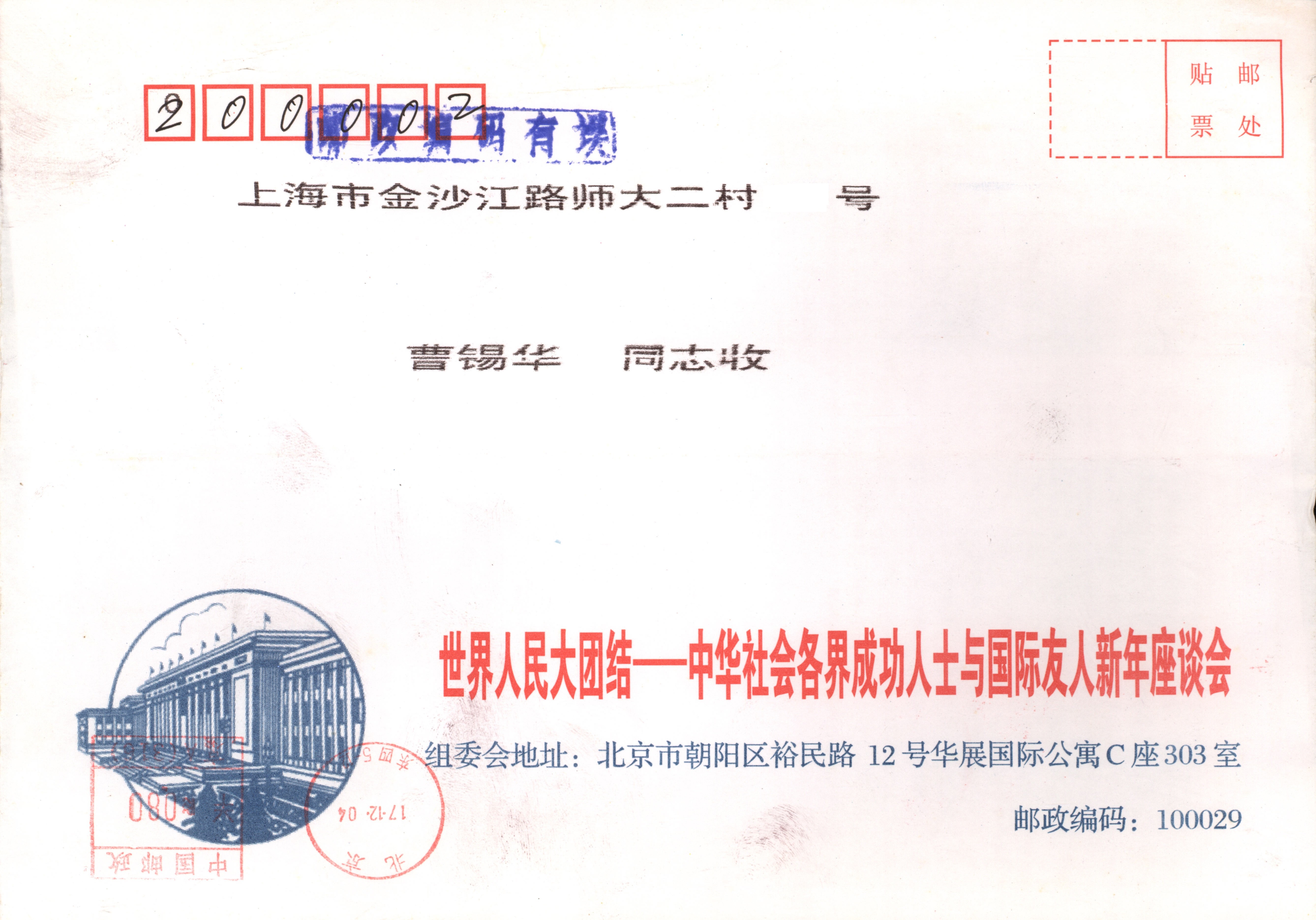 2004年12月17日世界人民大团结座谈会致曹锡华