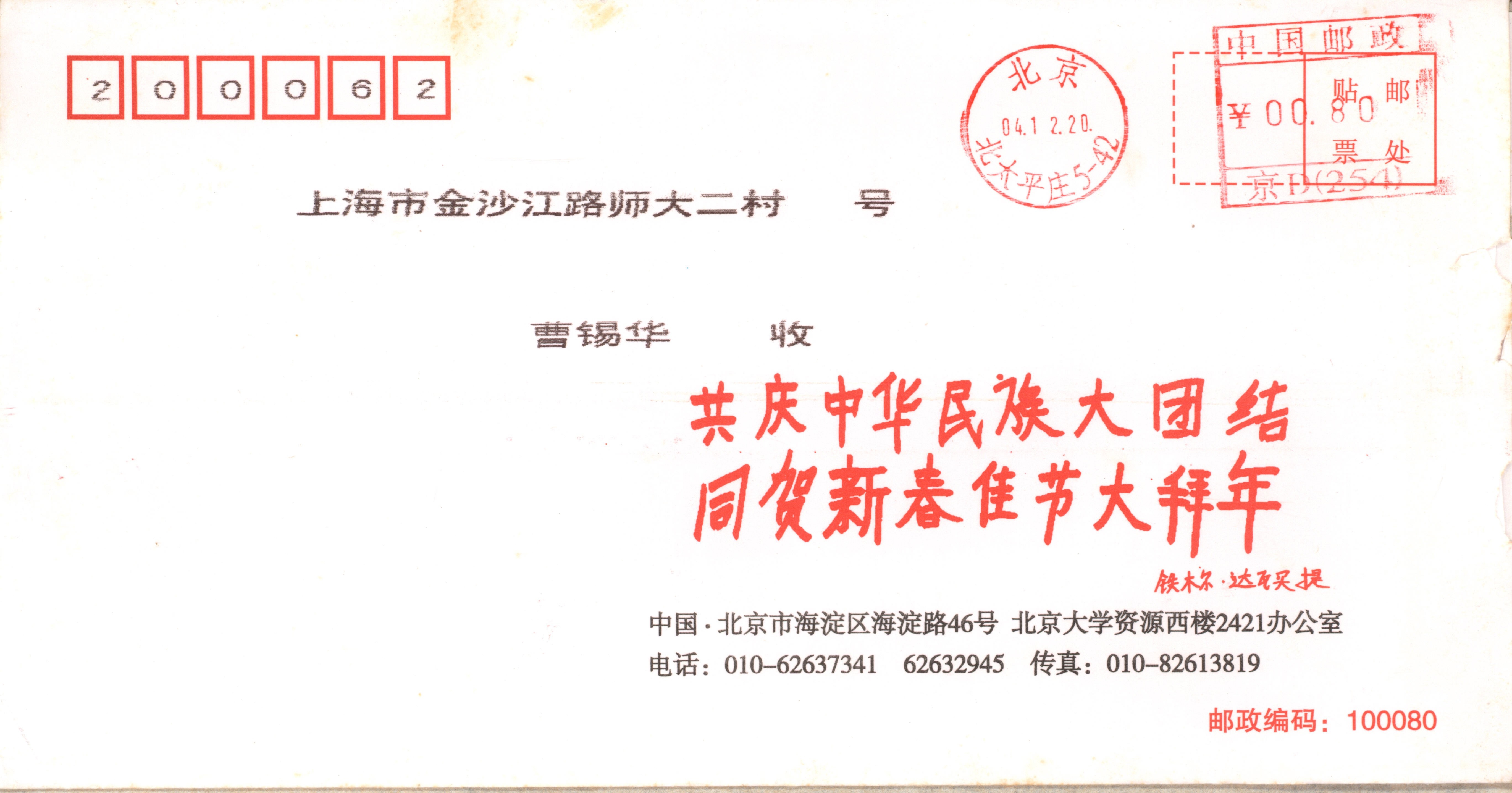 2004年12月20日,“2005年中华社会各界新闻人物代表共庆中华民族大团结共贺新春佳节大拜年”特邀嘉宾函