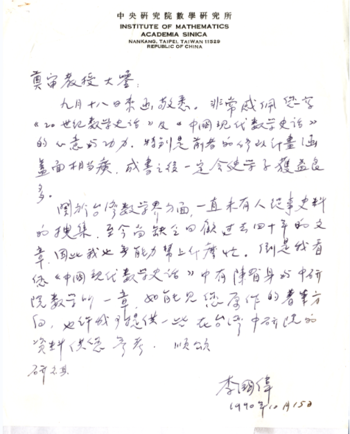 1990年10月15日李国伟致张奠宙