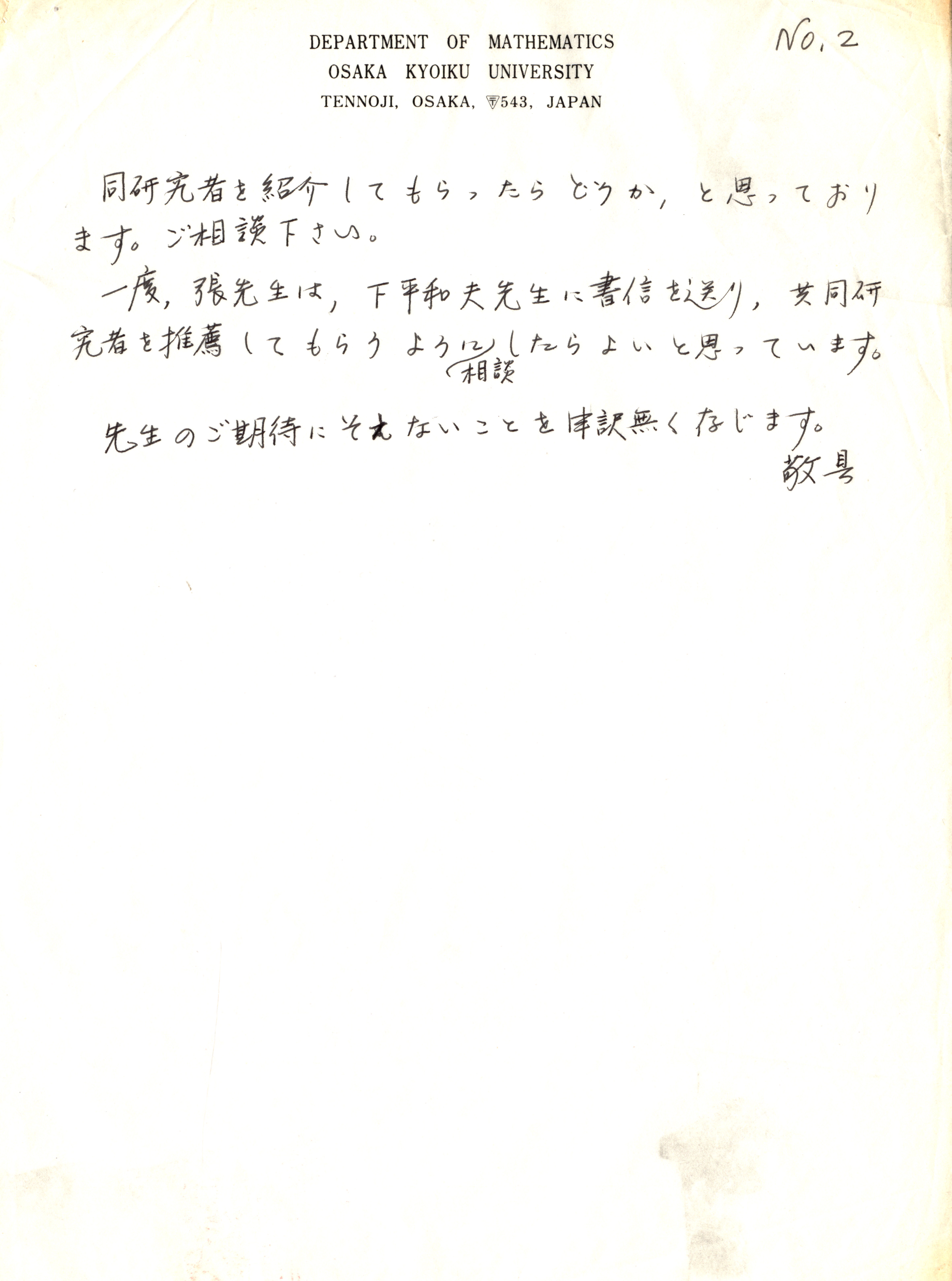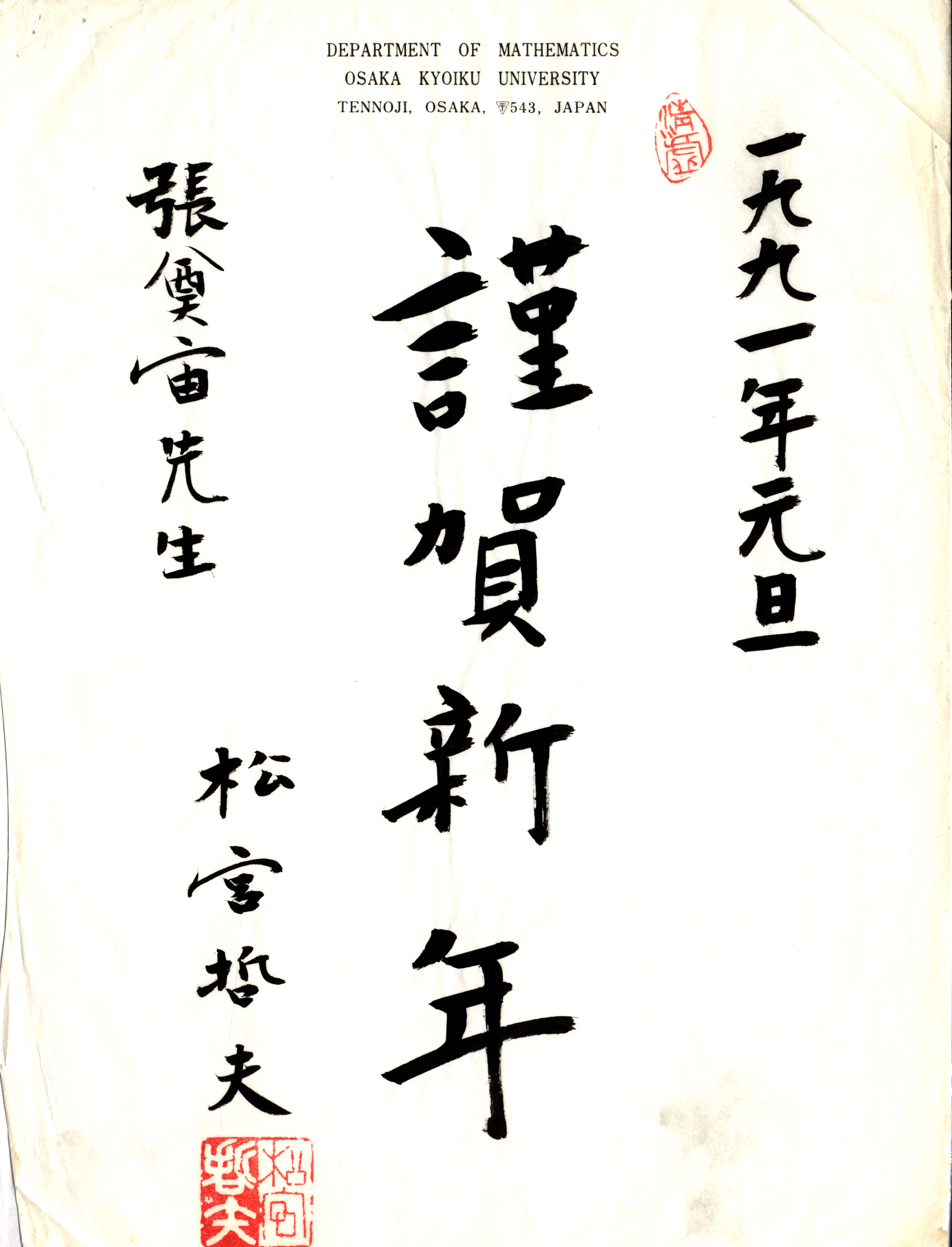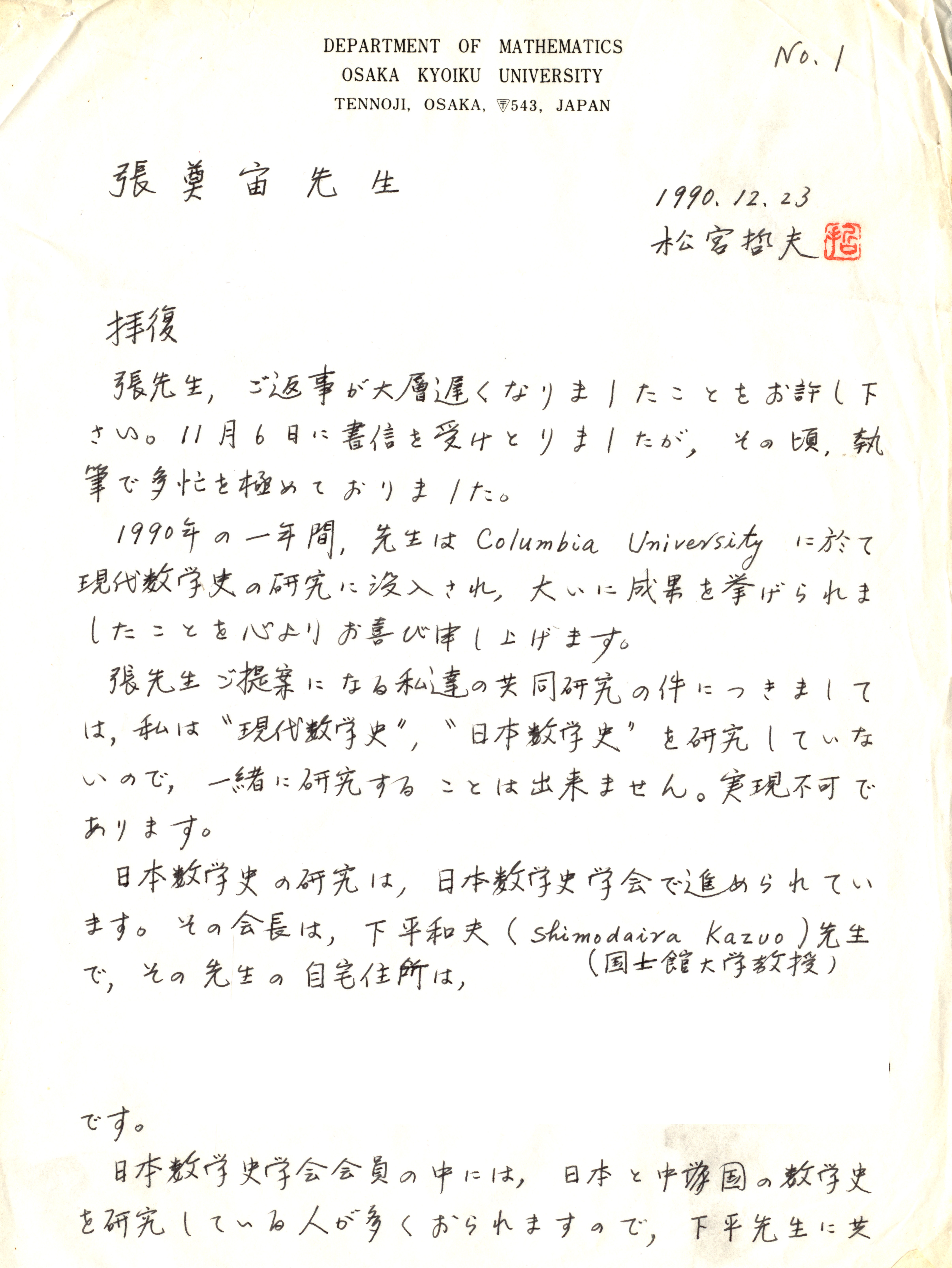 1990年12月23日松宫哲夫致张奠宙