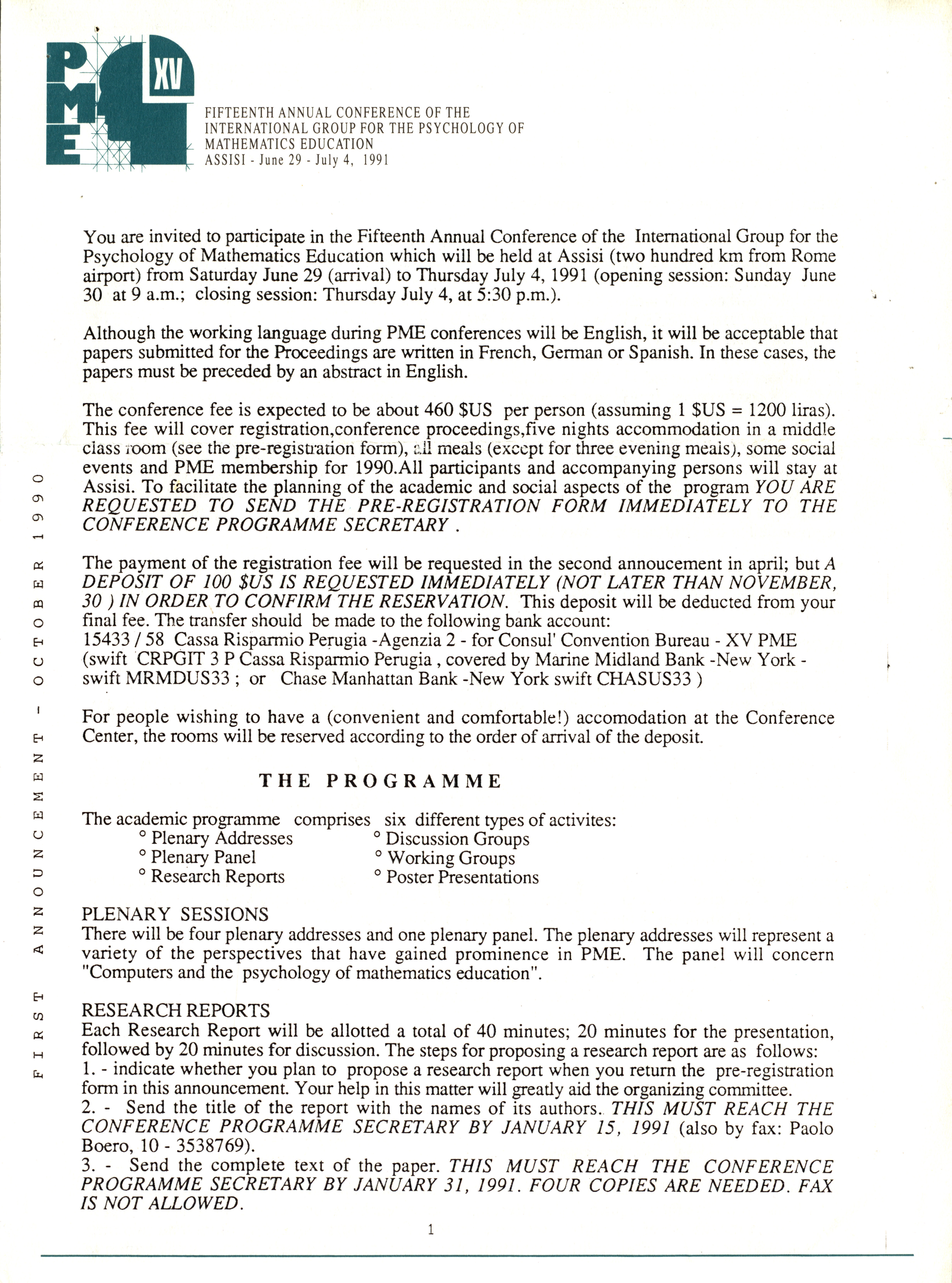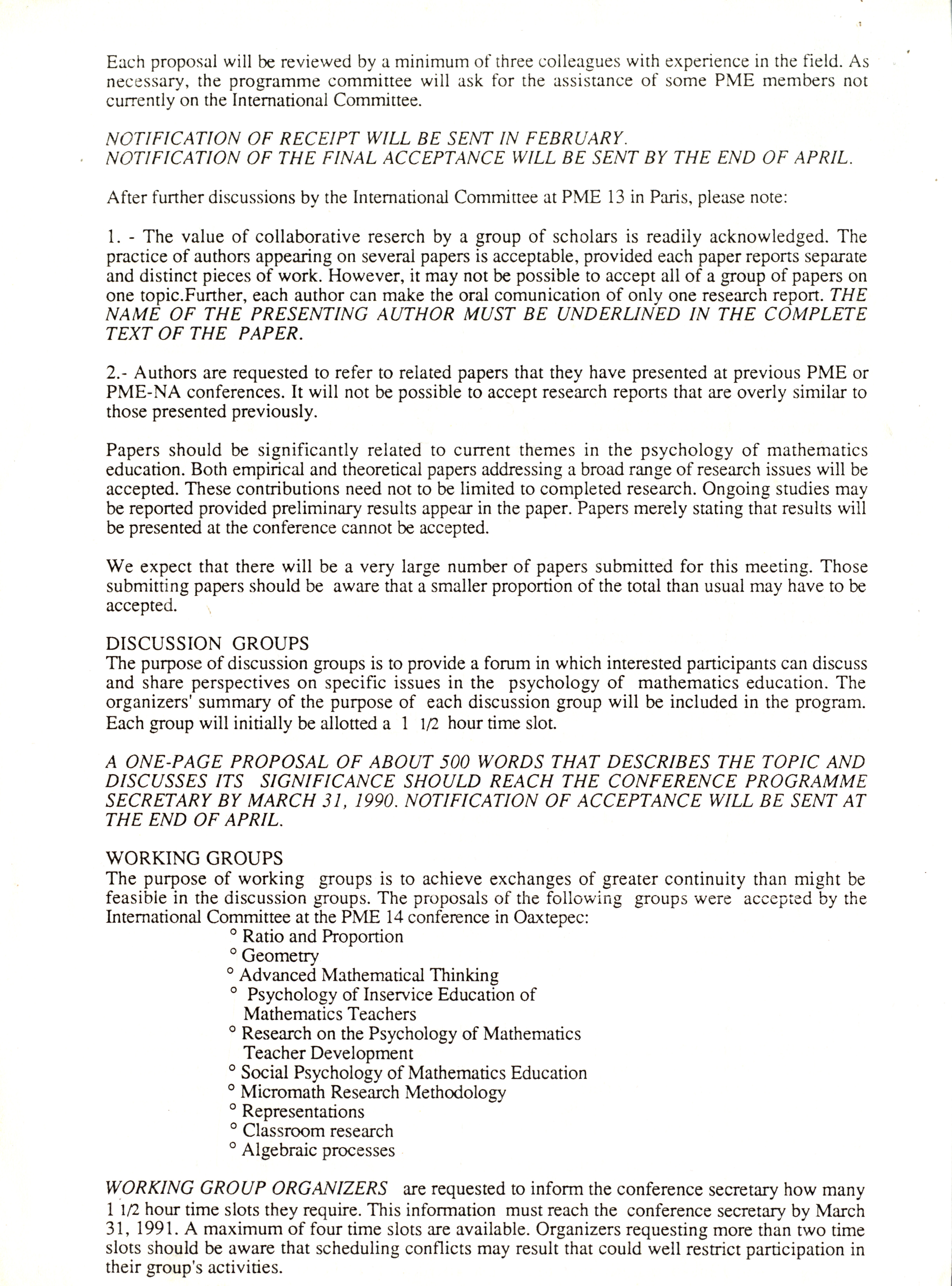 1991年6月29日数学教育心理学国际会议致张奠宙邀请函
