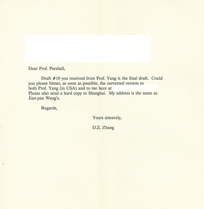1991年12月6日Karen Parshall致张奠宙