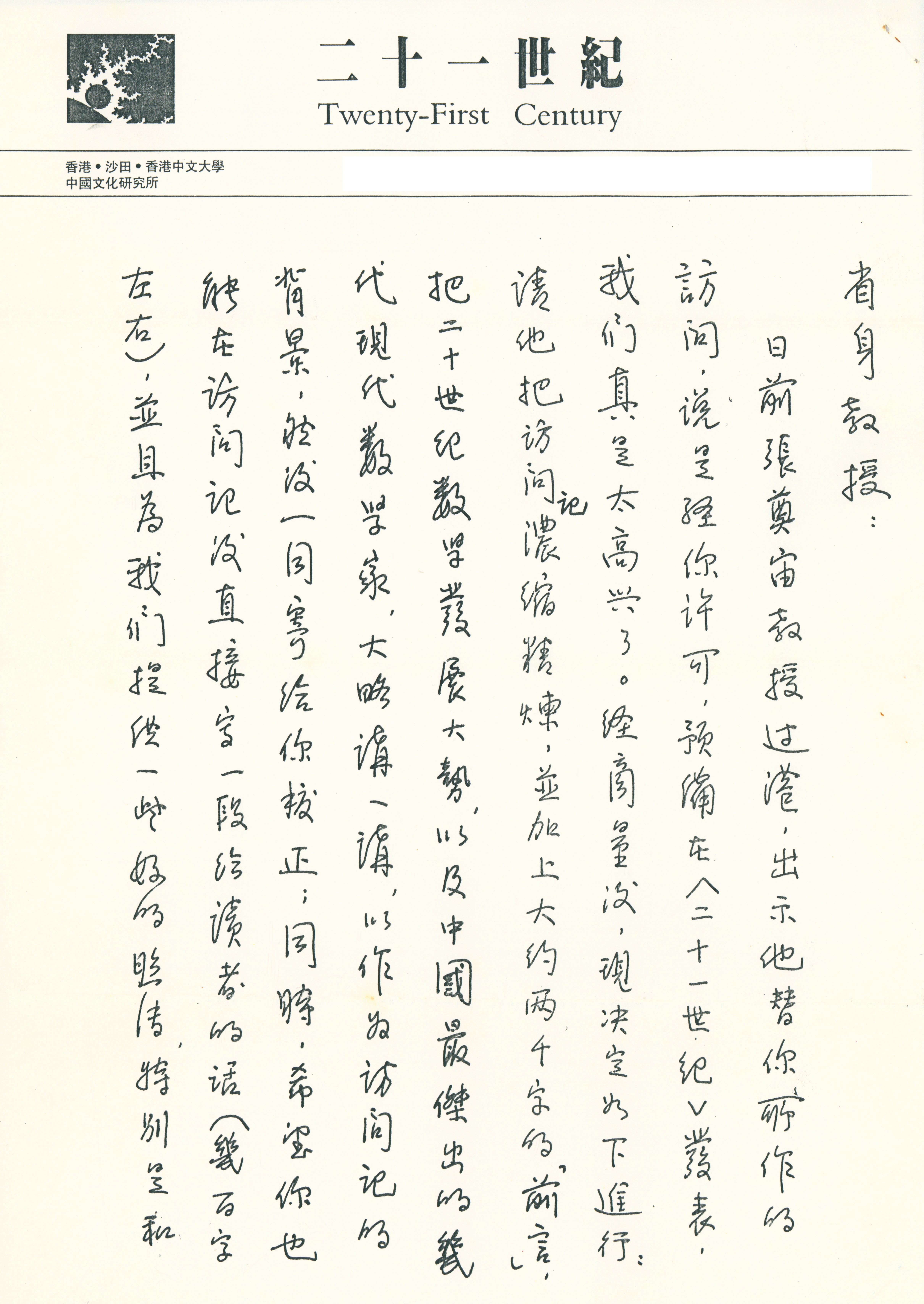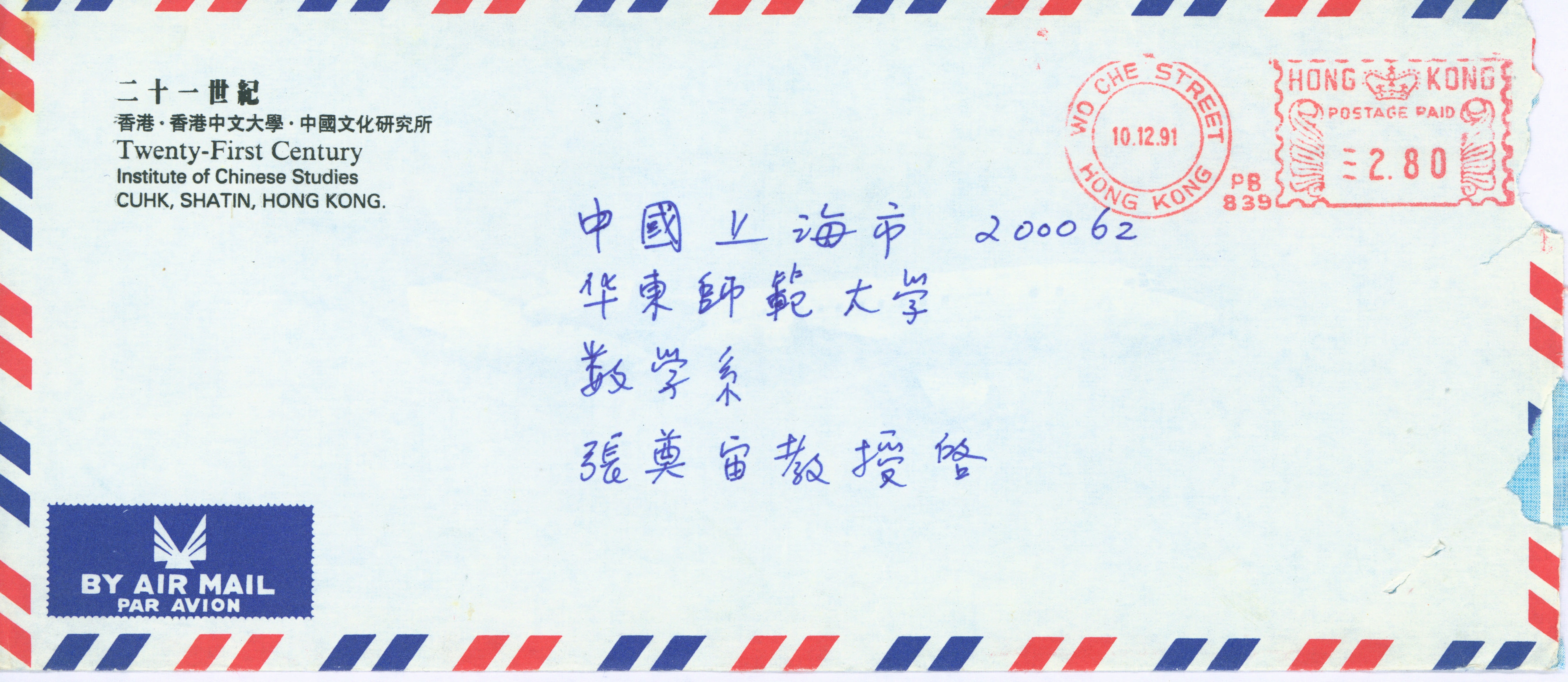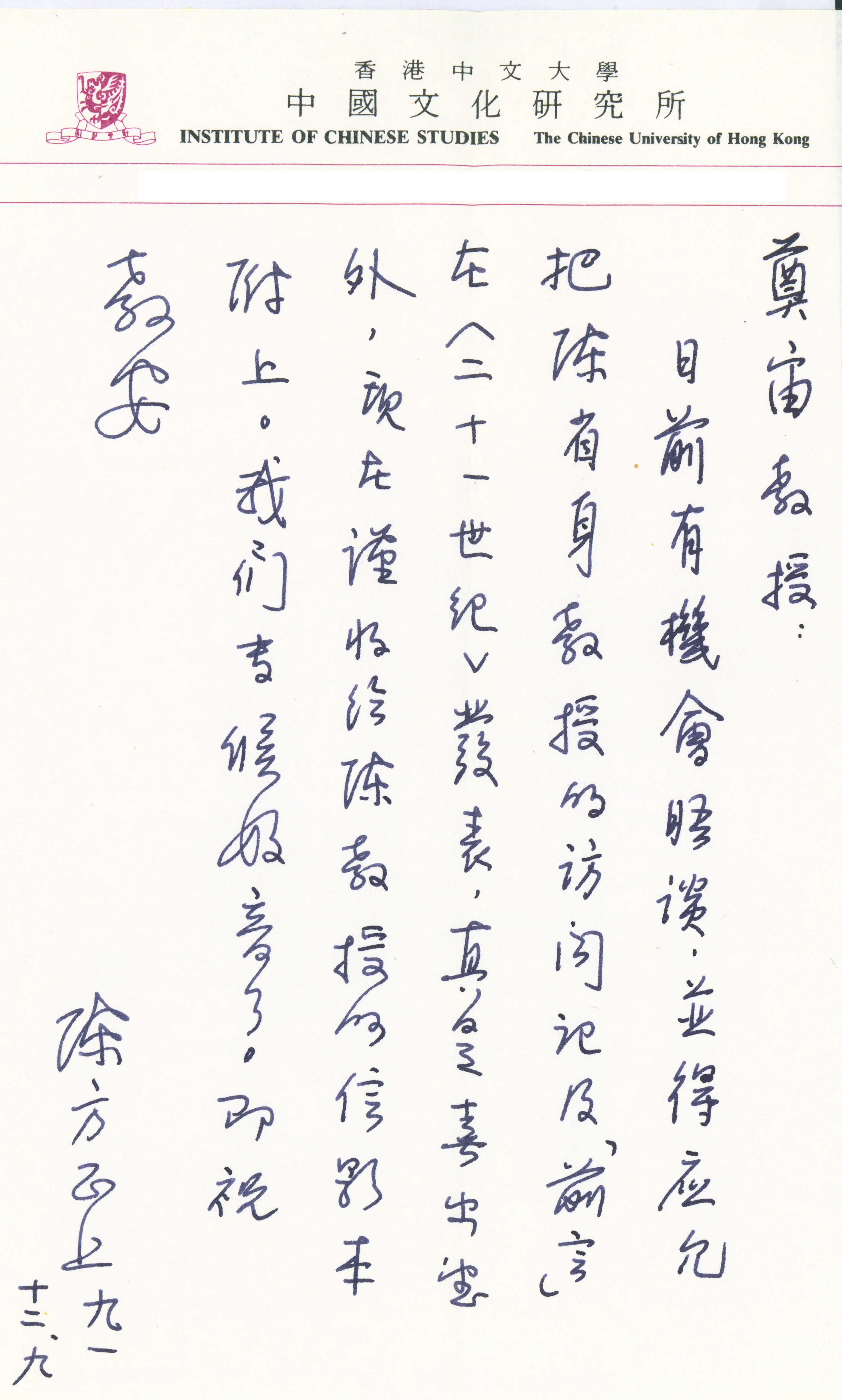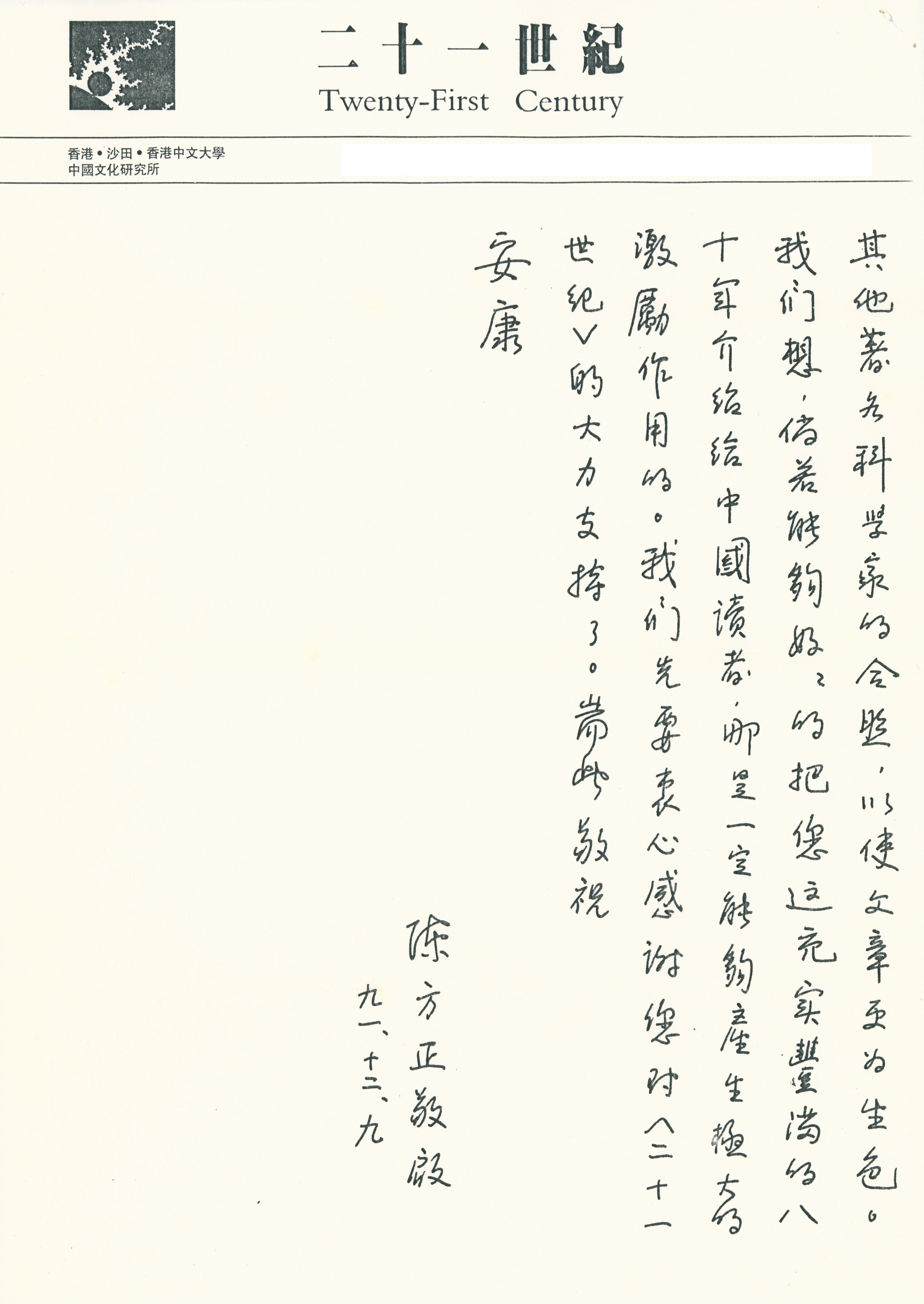 1991年12月9日陈方正致张奠宙(附陈方正致陈省身)