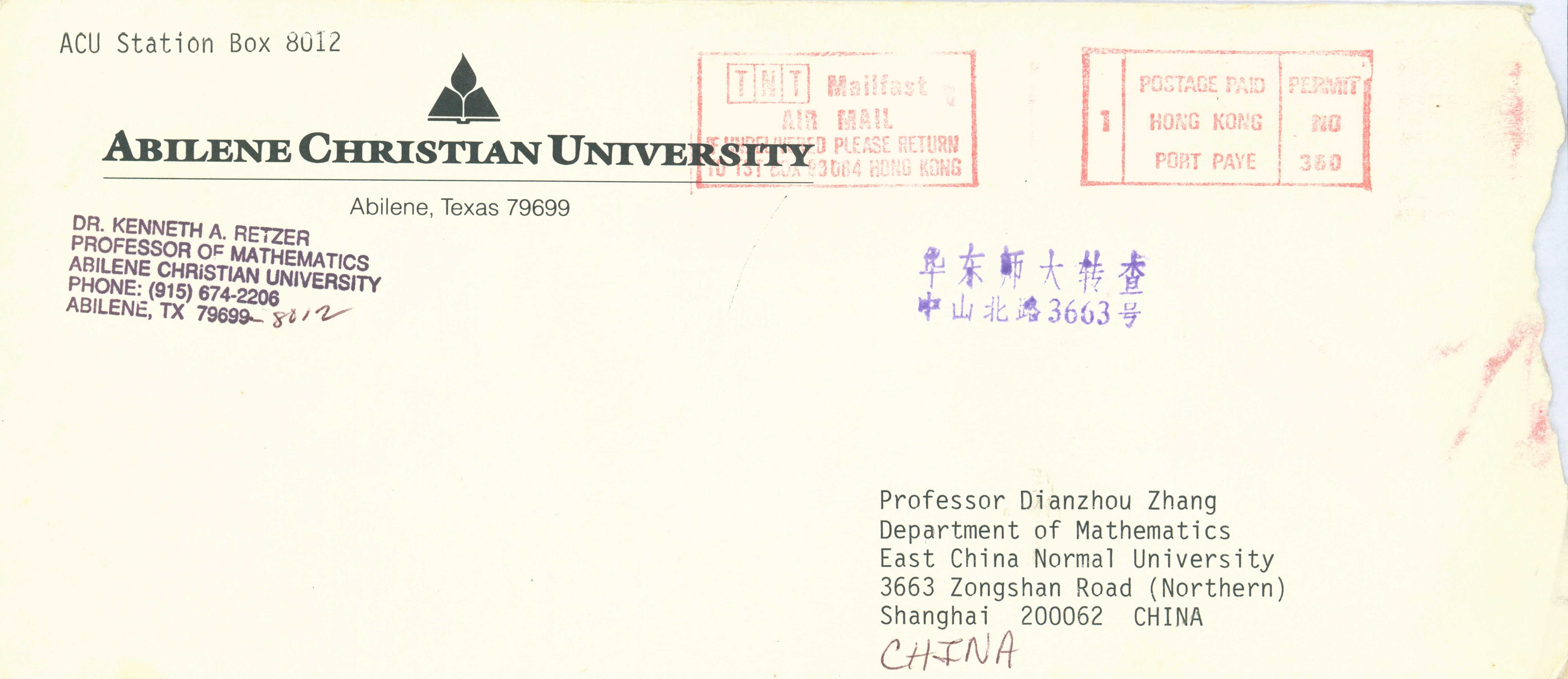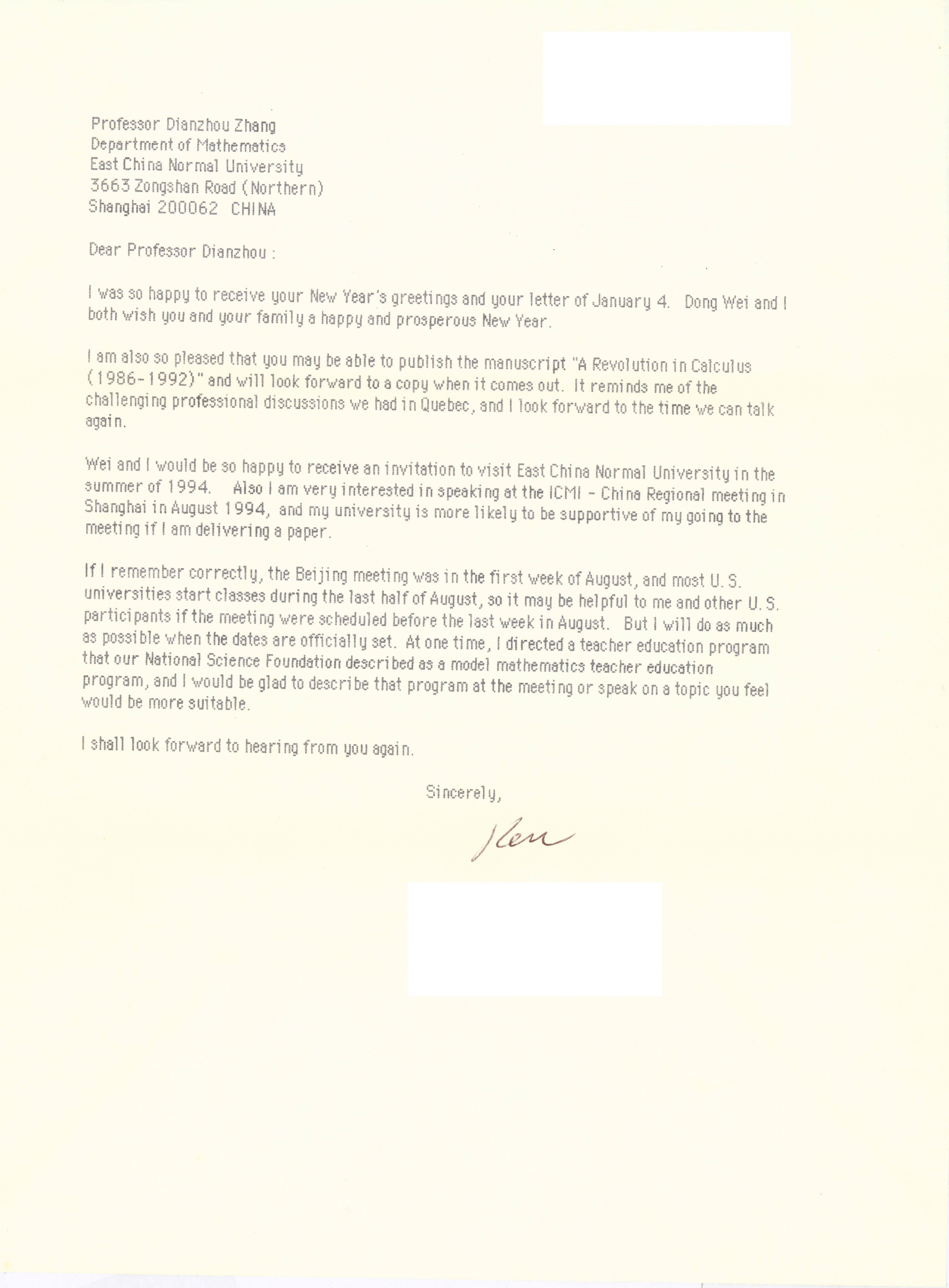 1993年1月27日Kenneth A. Retzer致张奠宙