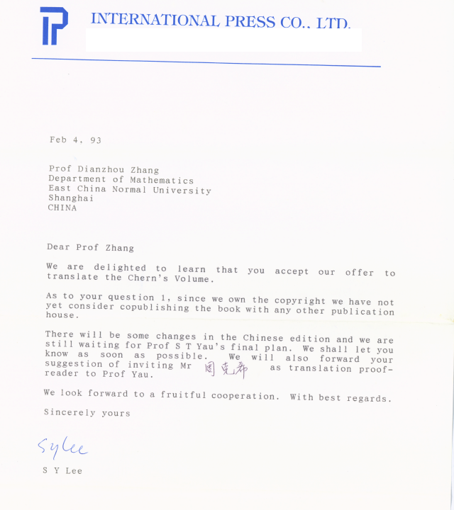 1993年2月4日SY Lee 致张奠宙