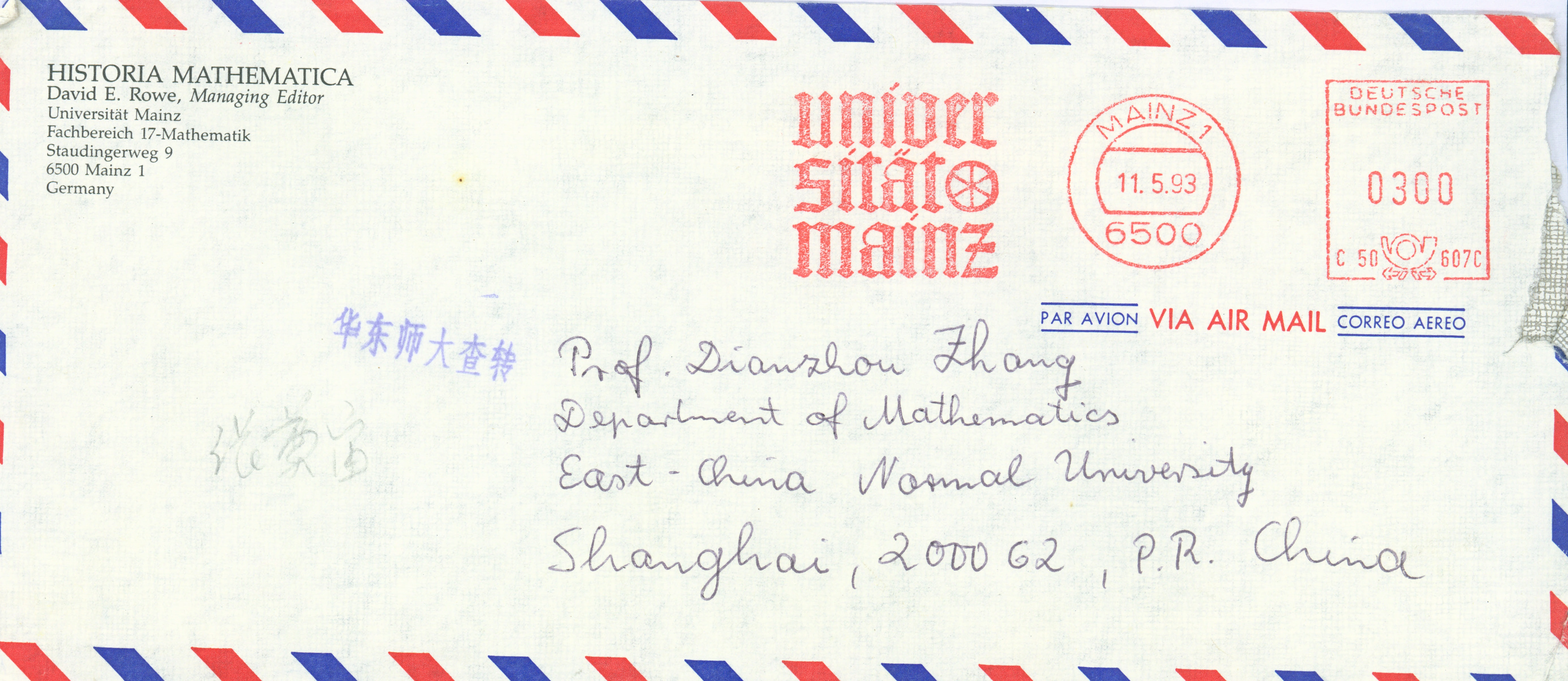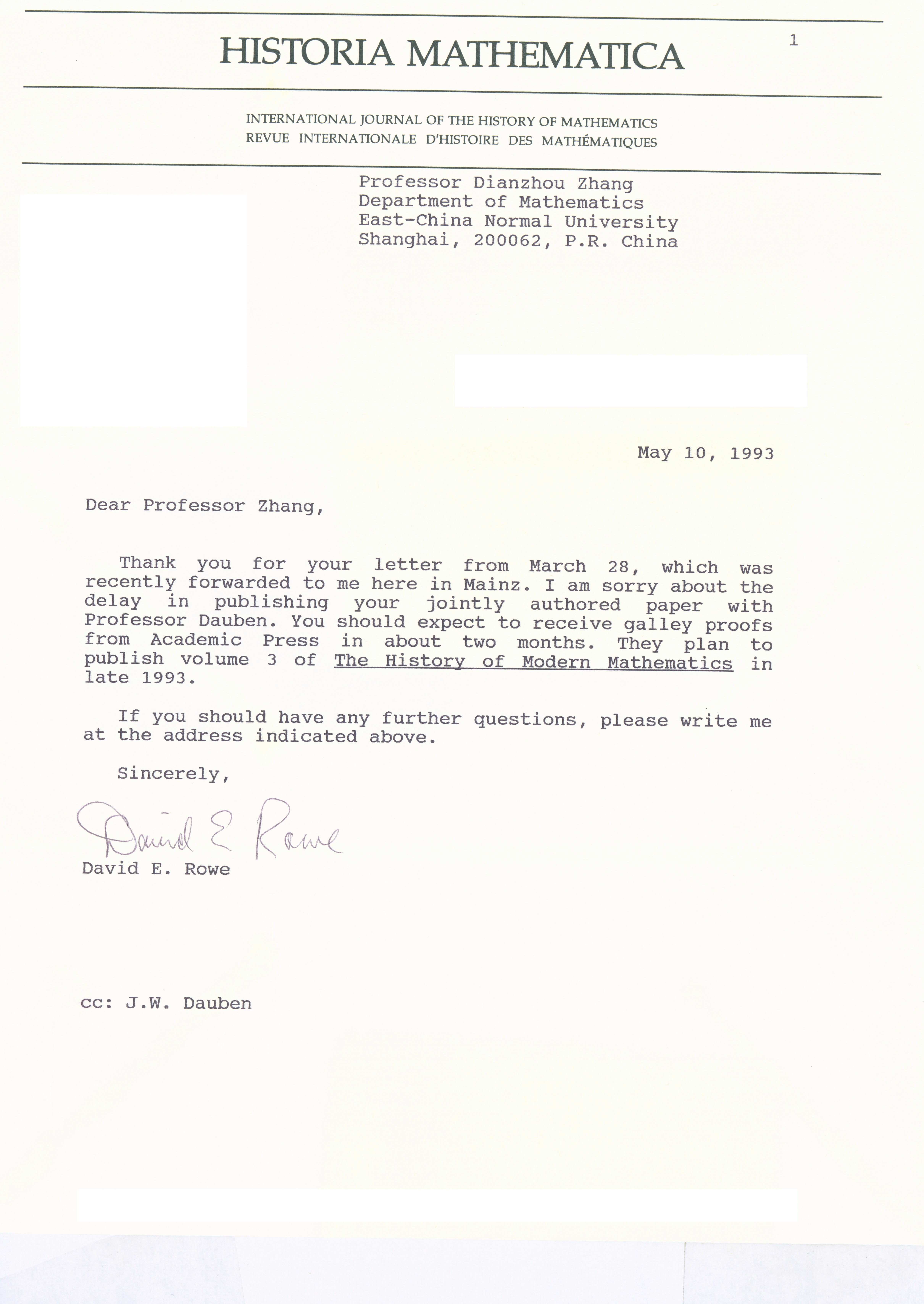 1993年5月10日David Rowe致张奠宙
