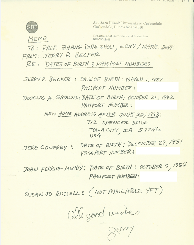 1993年6月22日Jerry P. Becke 致张奠宙